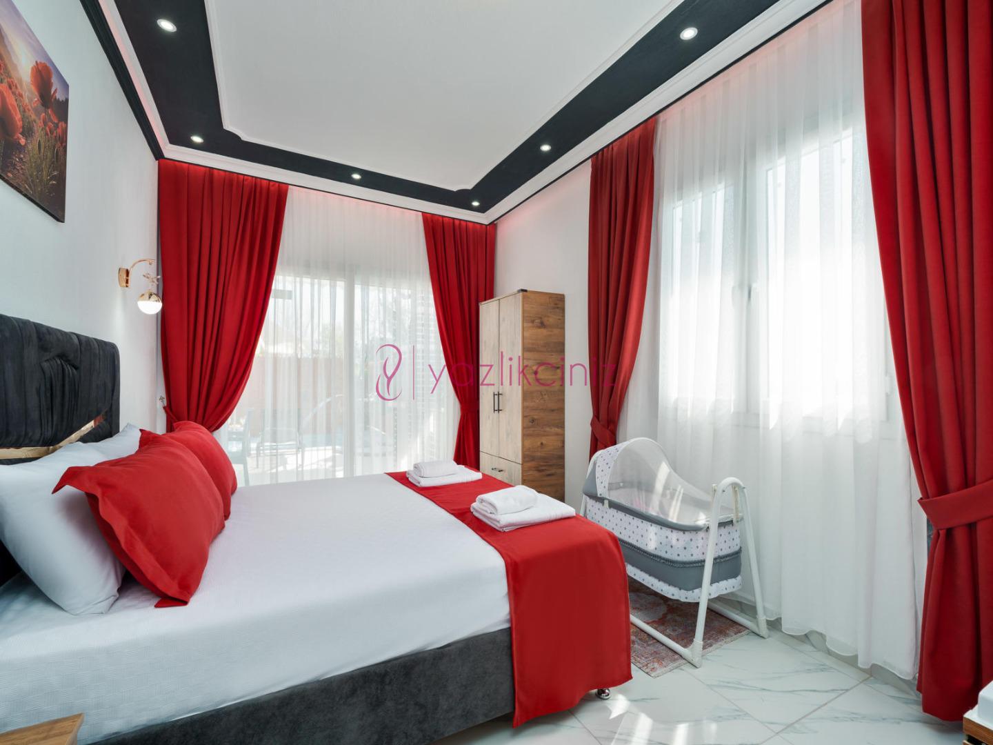 1. Yatak Odası: 1 adet çift kişilik yatak, jakuzi, televizyon, klima, elbise dolabı, komodin, bebek yatağı, makyaj masası, banyo ve tuvalet bulunmaktadır.