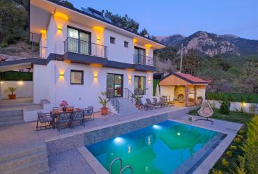 Villa Erk, Fethiye Seydikemer bölgesinde bulunan, havuzu korunaklı, geniş yemyeşil bahçe alanına sahip villa seçeneklerimizden biridir. Villa Erk, 2 yatak odalı 4 kişi kapasiteli olarak çekirdek aileler ve balayı çiftleri için idela bir seçenek olacaktır. Konforlu villamız sakin, gözlerden uzak tatil geçirmek isteyen sizler için doğa içinde konumlanmıştır. Sizler için her şeyin düşünüldüğü villamızda sizlere sadece tatilin tadını çıkarmak kalıyor.