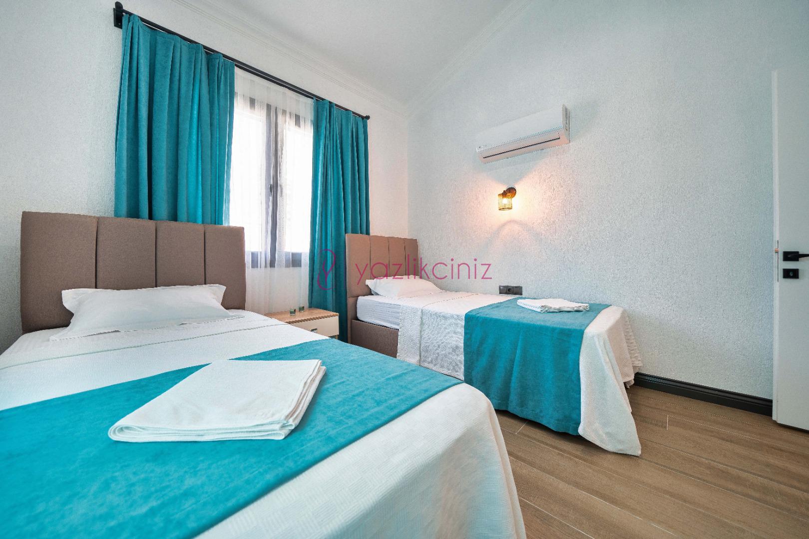 2. Yatak Odası: 2 adet tek kişilik yatak, elbise dolabı, klima, komodin, banyo ve tuvalet, bulunmaktadır.