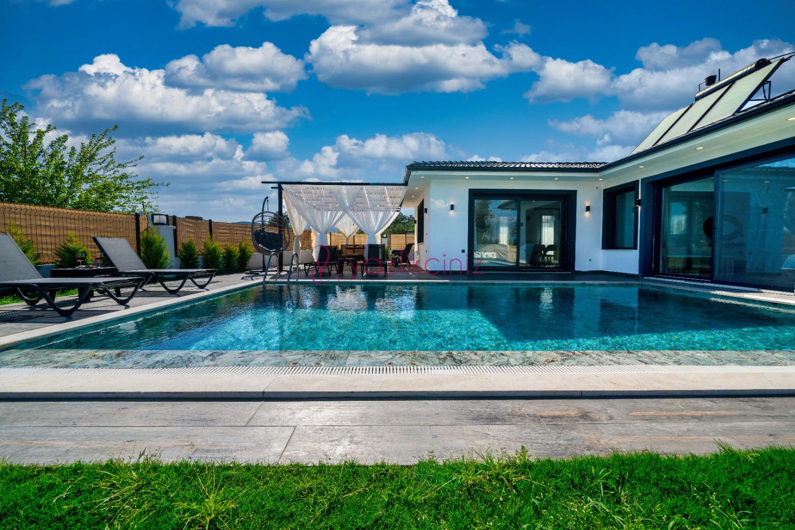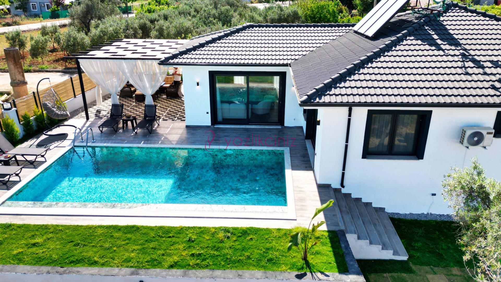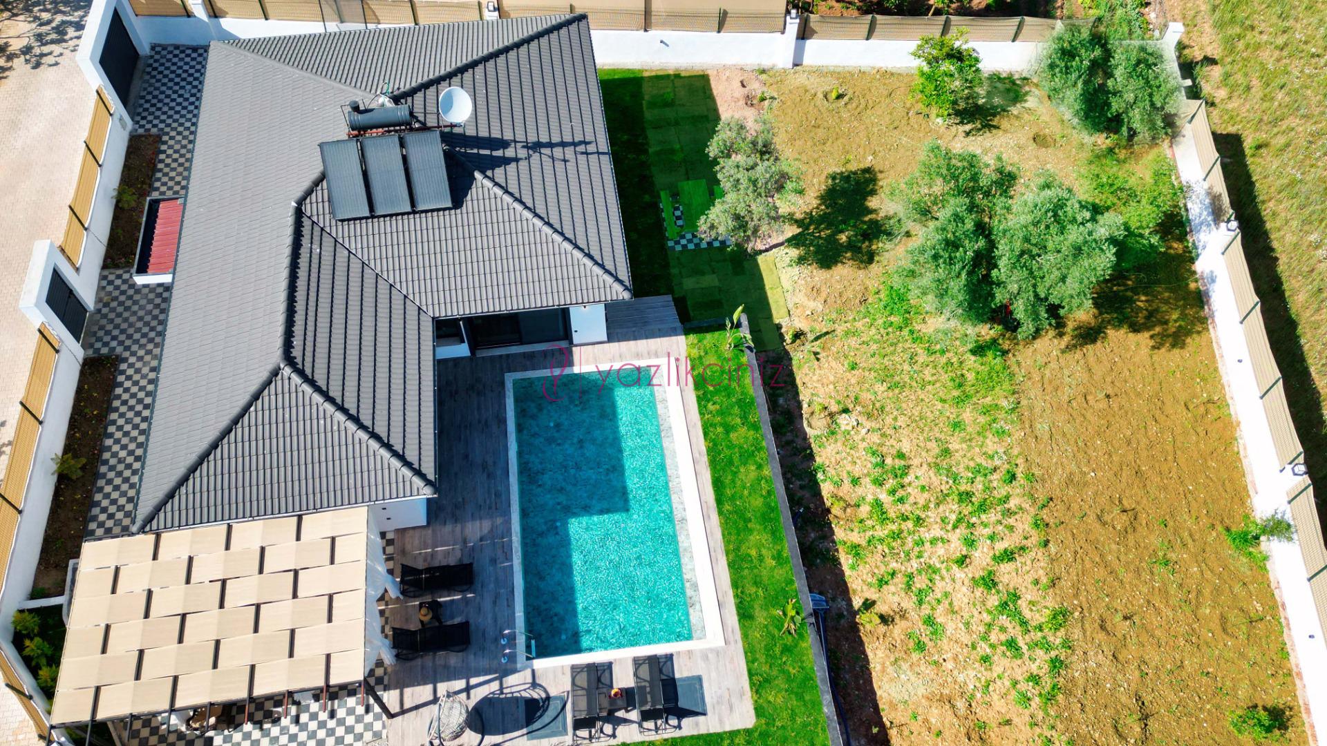 Not: Villanın güneşlenme terası ve havuzunun dış taraftan görünmemesi için gerekli önlemler alınmıştır fakat villanın diğer bölümlerinin görünürlüğü kesin olarak garanti edilememektedir.