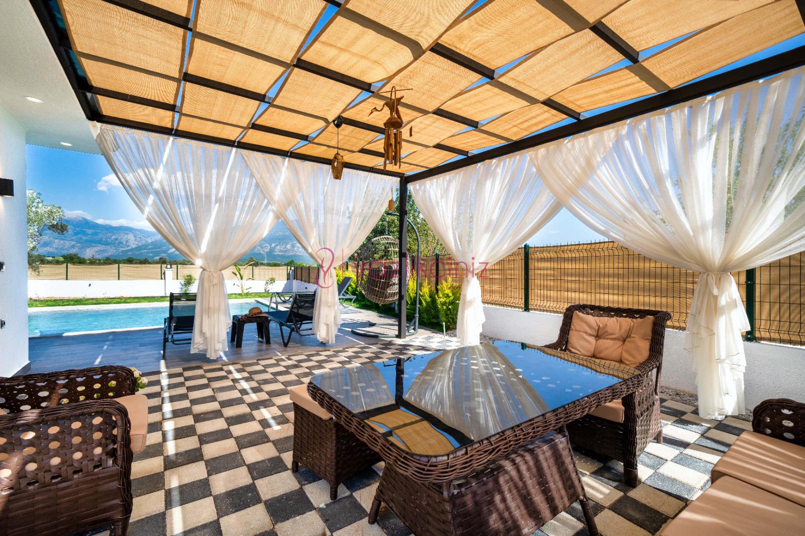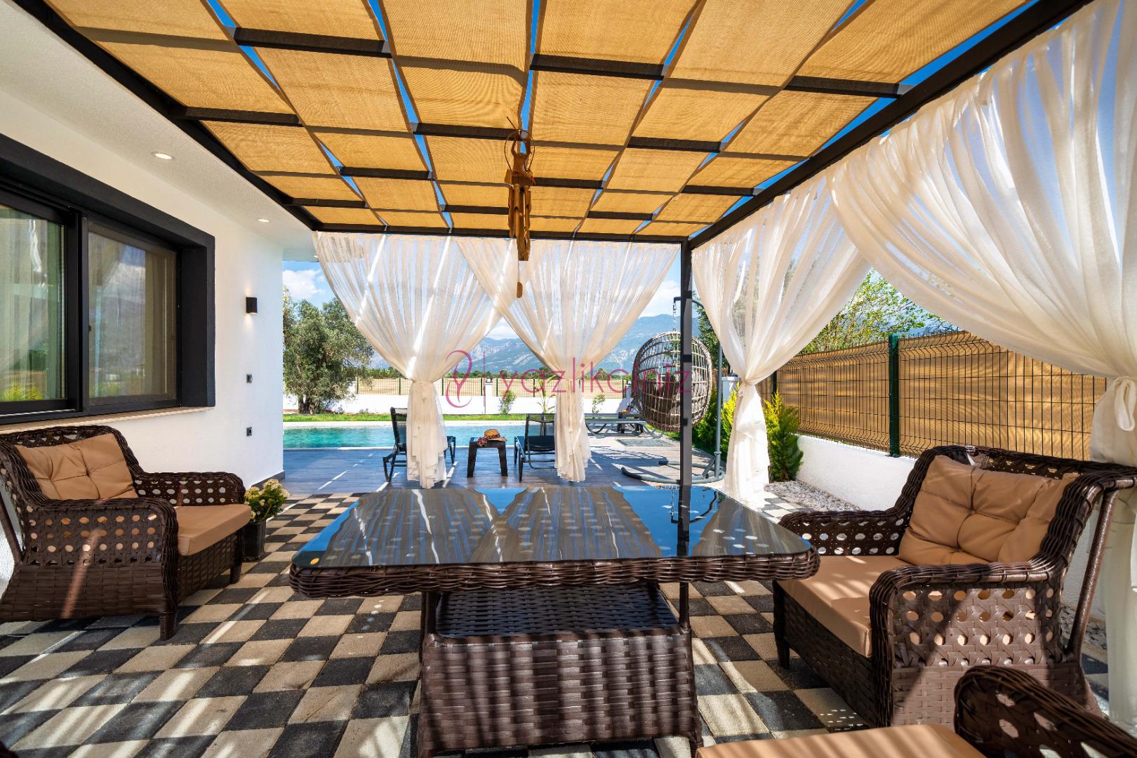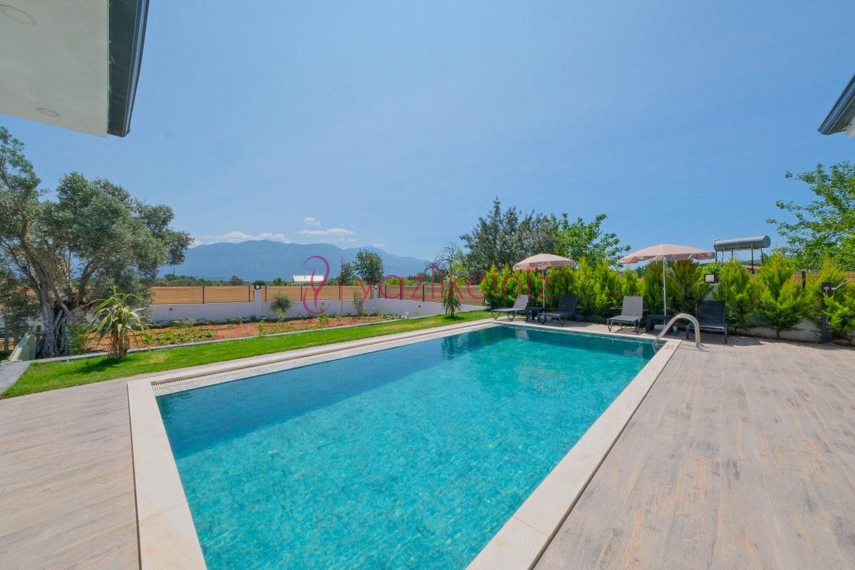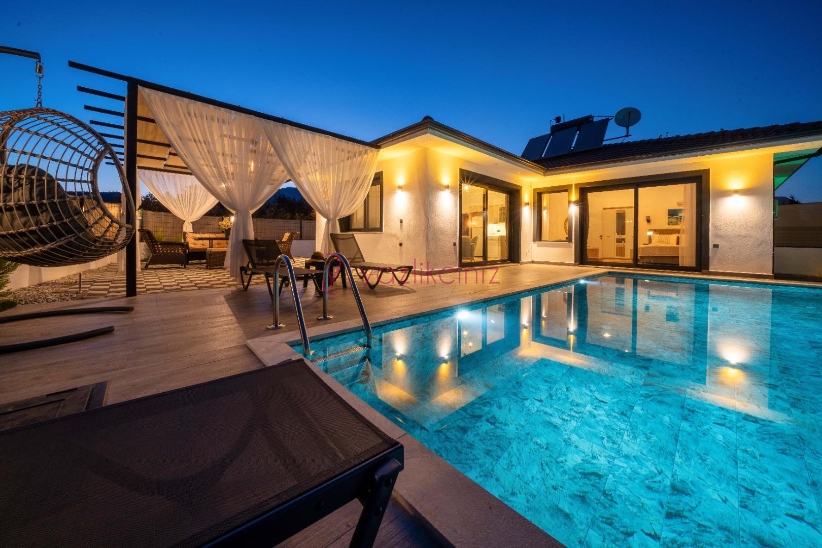 Not: Villanın güneşlenme terası ve havuzunun dış taraftan görünmemesi için gerekli önlemler alınmıştır fakat villanın diğer bölümlerinin görünürlüğü kesin olarak garanti edilememektedir.