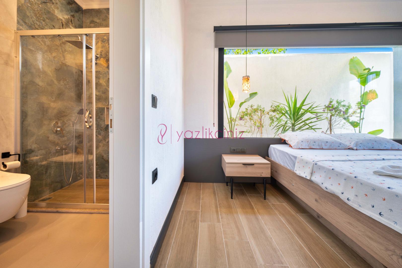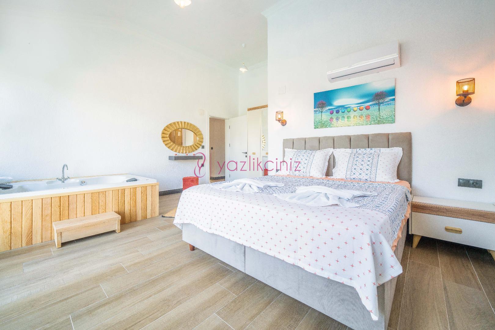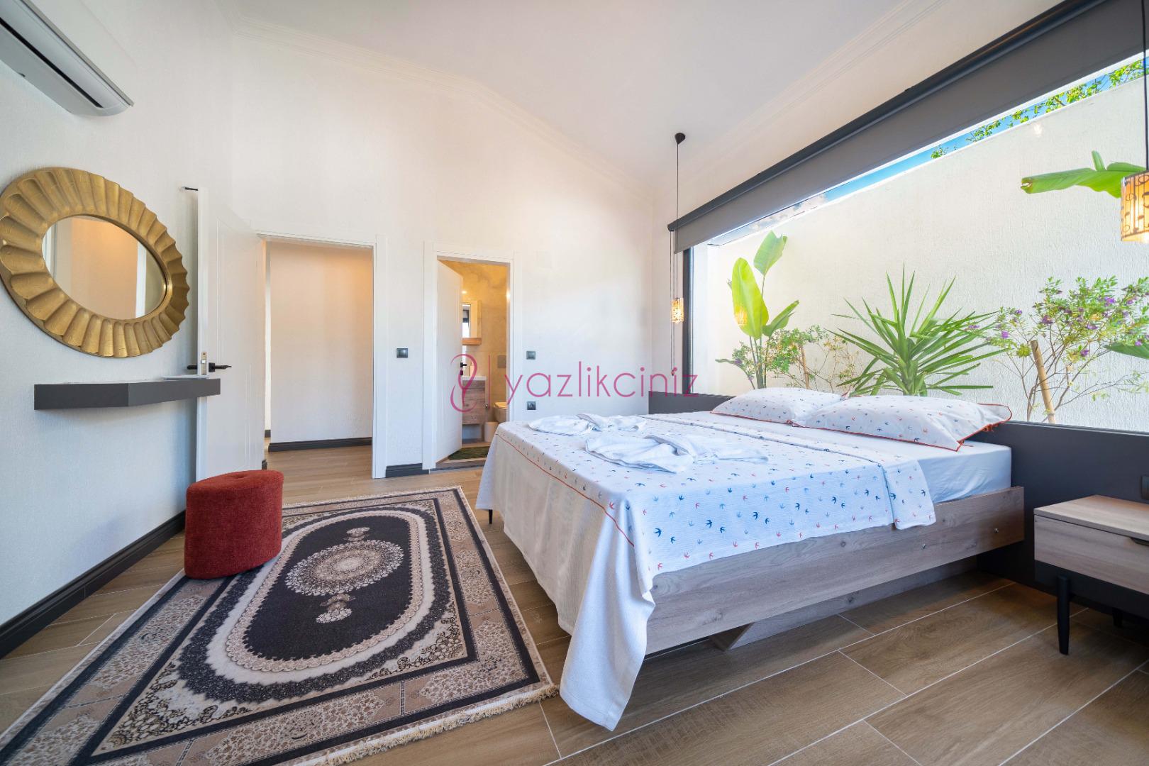 1. Yatak odası: 1 adet çift kişilik yatak, makyaj masası, klima, elbise dolabı, komodin, banyo ve tuvalet bulunmaktadır