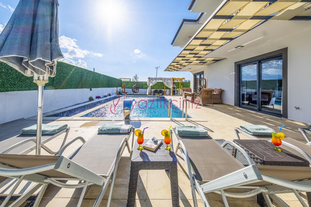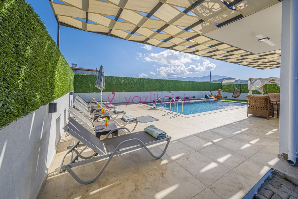 Not: Villanın güneşlenme terası ve havuzunun dış taraftan görünmemesi için gerekli önlemler alınmıştır fakat villanın diğer bölümlerinin görünürlüğü kesin olarak garanti edilememektedir.