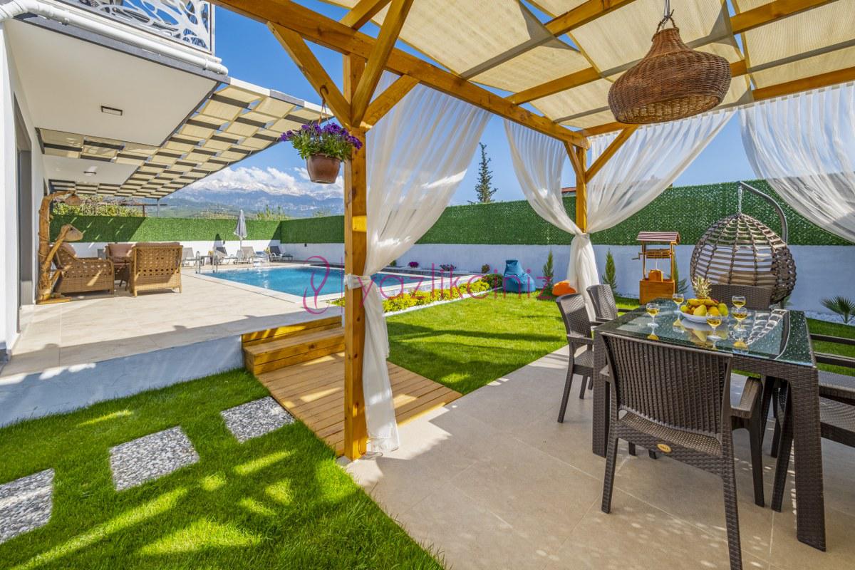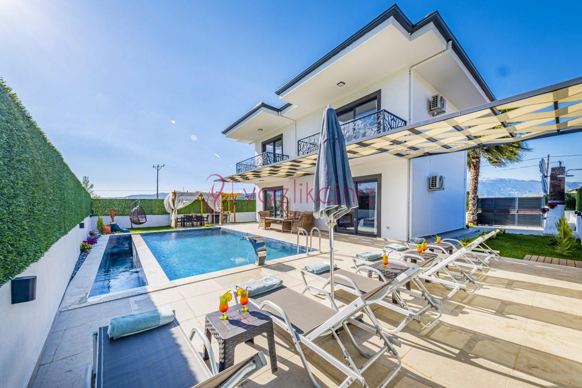 Villa Faye, Fethiye Seydikemer/Eşen bölgesinde bulunan, muhafazakar balayı seçeneğimizdir, doğa içerisinde konumlanan 2 yatak odalı 4 kişi kapasiteli olan Villa Faye, balayı çiftleri ve çekirdek aileler için eşsiz bir seçenek olacaktır. Modern mimarisi ve şık tasarımıyla sizlere unutulmaz bir tatilin kapılarını aralamaktadır. Her mevsim tatilinize uygun olacak şekilde kapalı ısıtmalı havuzu da aktiftir. Villacınız ile keyfinize keyif, anılarınıza anı katacak sizin için tasarlanmış bir villamızdır. Şıklığı ile göz kamaştıran villamız sakin, gözlerden uzak tatil geçirmek isteyen sizler için doğa içinde konumlanmıştır. Yorgunluk ve stresinizden tamamen arınabilmeniz için yatak odasında bulunan jakuzi de tüm yılın yorgunluğunu atabilirsiniz.