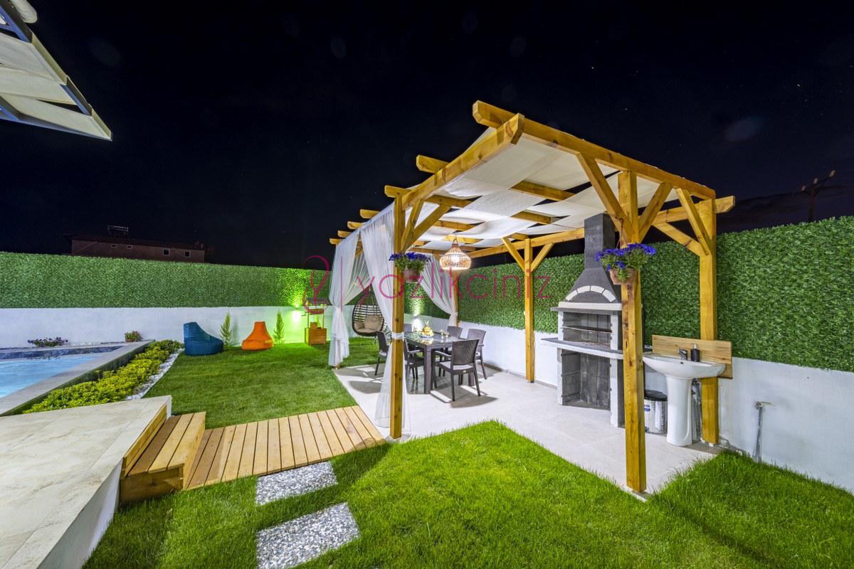 Şezlong, mangal, oturma gurubu, yemek masası bulunmaktadır.