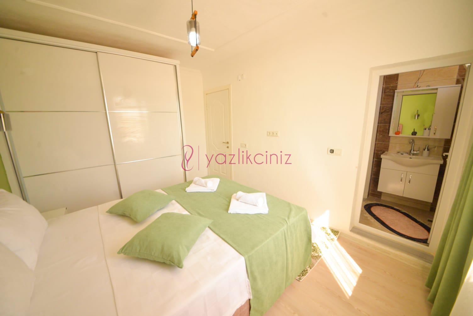 2. Yatak Odasi:1 adet çift kişilik yatak, komodin, elbise dolabı, klima, makyaj masası, banyo ve tuvalet bulunmaktadır.