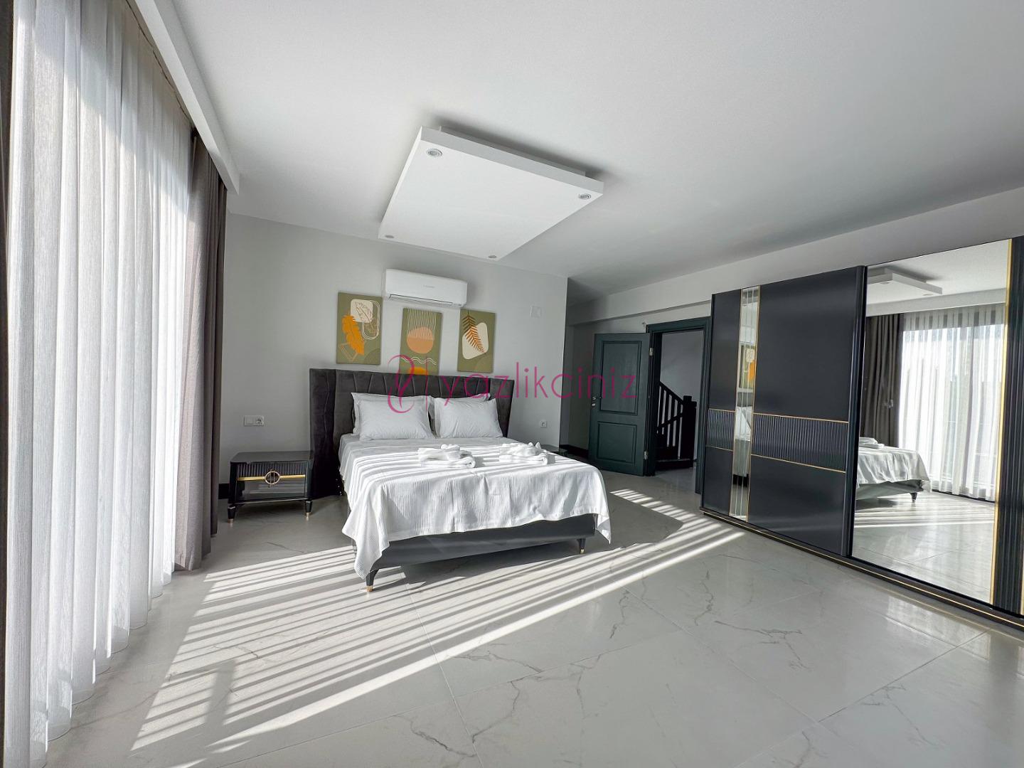 4.Yatak Odası: 1 adet çift kişilik yatak, elbise dolabı, balkon, klima, makyaj masası, komodin, banyo ve tuvalet bulunmaktadır.