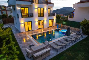 Fethiye Ovacık mevkiinde konumlanan Villa Grey, konforlu ve kaliteli bir tatil geçirmek isteyen aileler ve arkadaş grupları için oldukça ideal bir seçenektir. Geniş havuz ve bahçe alanına sahip olan villamız bulunduğu mevkideki restoran ve marketlere yürüme mesafesinde olup, Dünyaca ünlü Ölüdeniz plajına araç ile 5 dakikalık sürüş mesafesinde yer almaktadır. 4 adet balkonlu suit yatak odası bulunan Villa Grey, 8 kişi konaklama kapasitesine sahiptir.