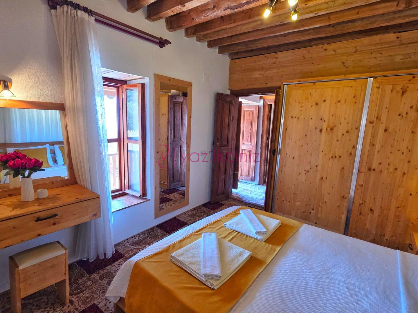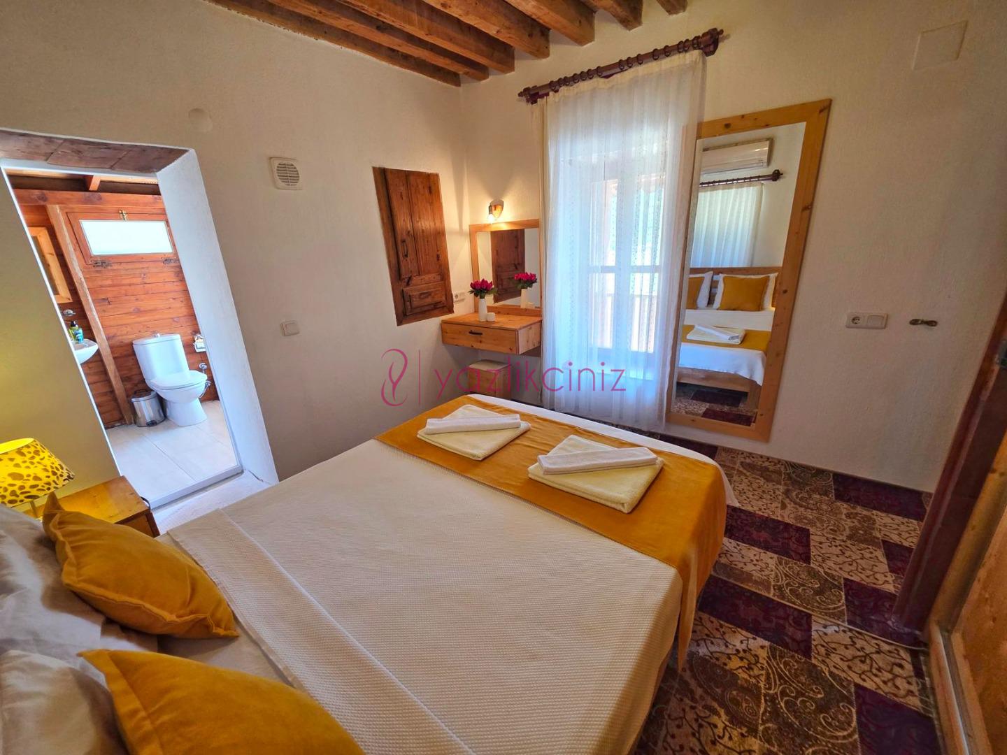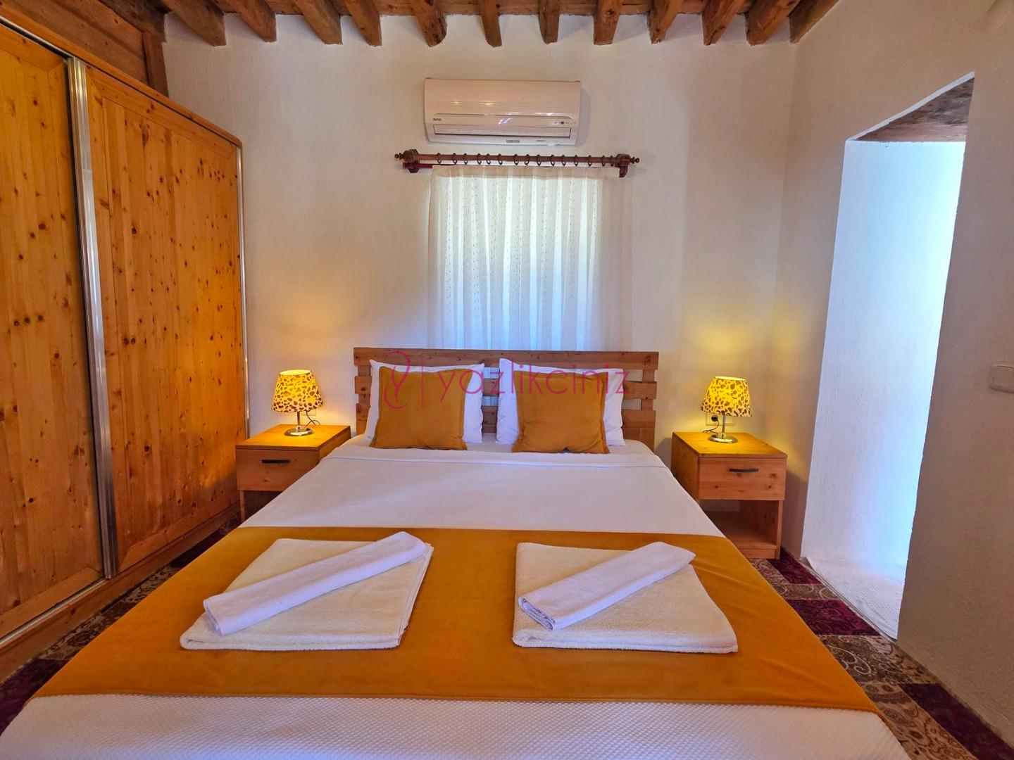1.Yatak Odasi: 1 adet çift kisilik yatak, klima, jakuzi, komodin, elbise dolabi, makyaj masasi, banyo ve tuvalet bulunmaktadir.