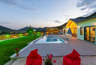 Villa Happiness, Kalkan Sarıbelen Bölgesinde , 2 yatak odalı ve 5 kişi kapasitelidir. Villamız geniş bahçesi ile geniş ailelere oldukça uygundur. Villa Happiness, suit yatak odasında ki jakuzisi ile tüm yılın yorgunluğunu atabilme fırsatı da sunmaktadır. Villamız geniş ailelere uygun olarak şık ve modern dizayn edilmiştir. Özel tas mimari tasarıma sahip villamızda korunaklı özel yüzme havuzu, jakuzi, sauna, çocuk havuzu, çocuk oyun alanı, barbekü alanı gibi sizleri mutlu edecek bir çok özelliği bünyesinde barındırmaktadır.