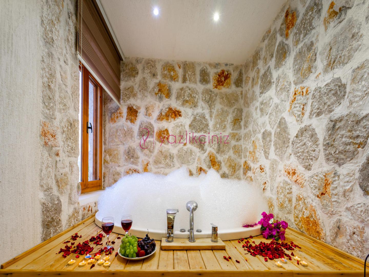 1: Yatak Odası: Çift kişilik yatak, klima, jakuzi, komodin, elbise dolabı, makyaj masası, banyo ve tuvalet bulunmaktadır.