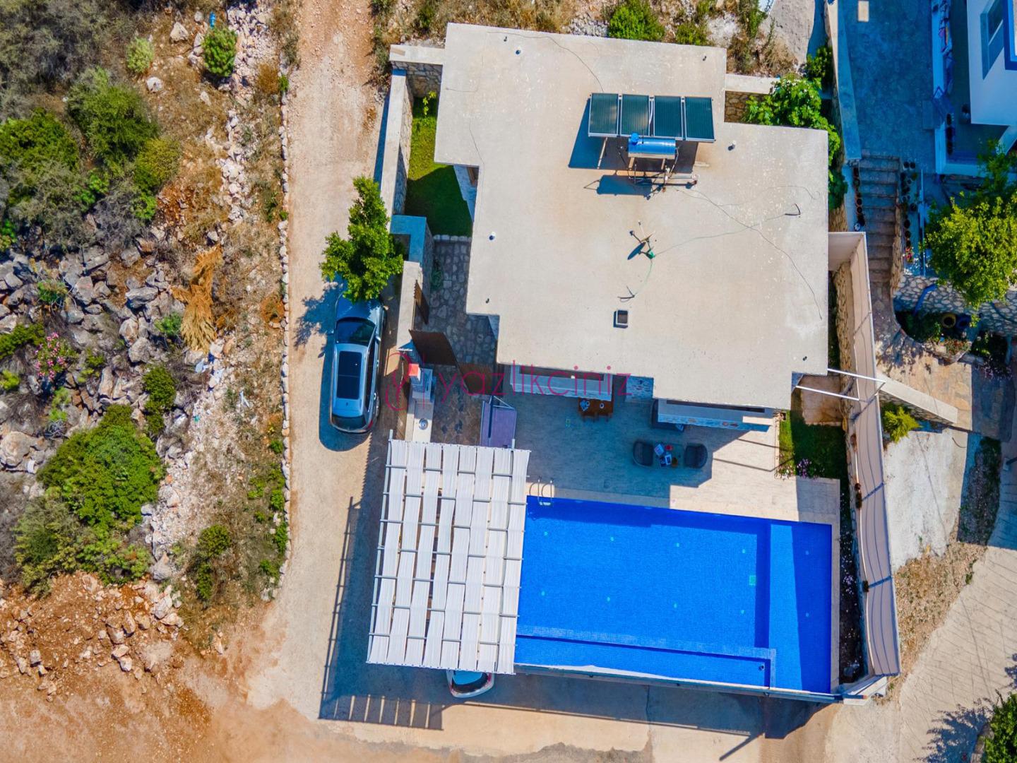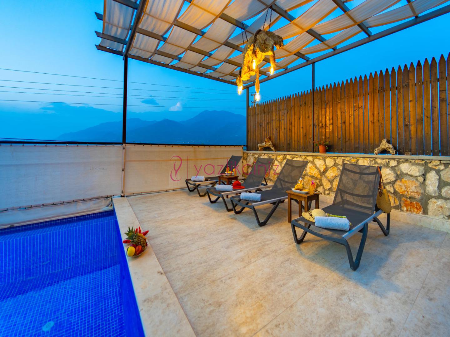 Havuz ve bahçesi korunaklı olup dışarıdan gözükmemektedir. Özel yüzme havuzu, , şezlong, şemsiye, yemek masası ve mangal bulunmaktadır.