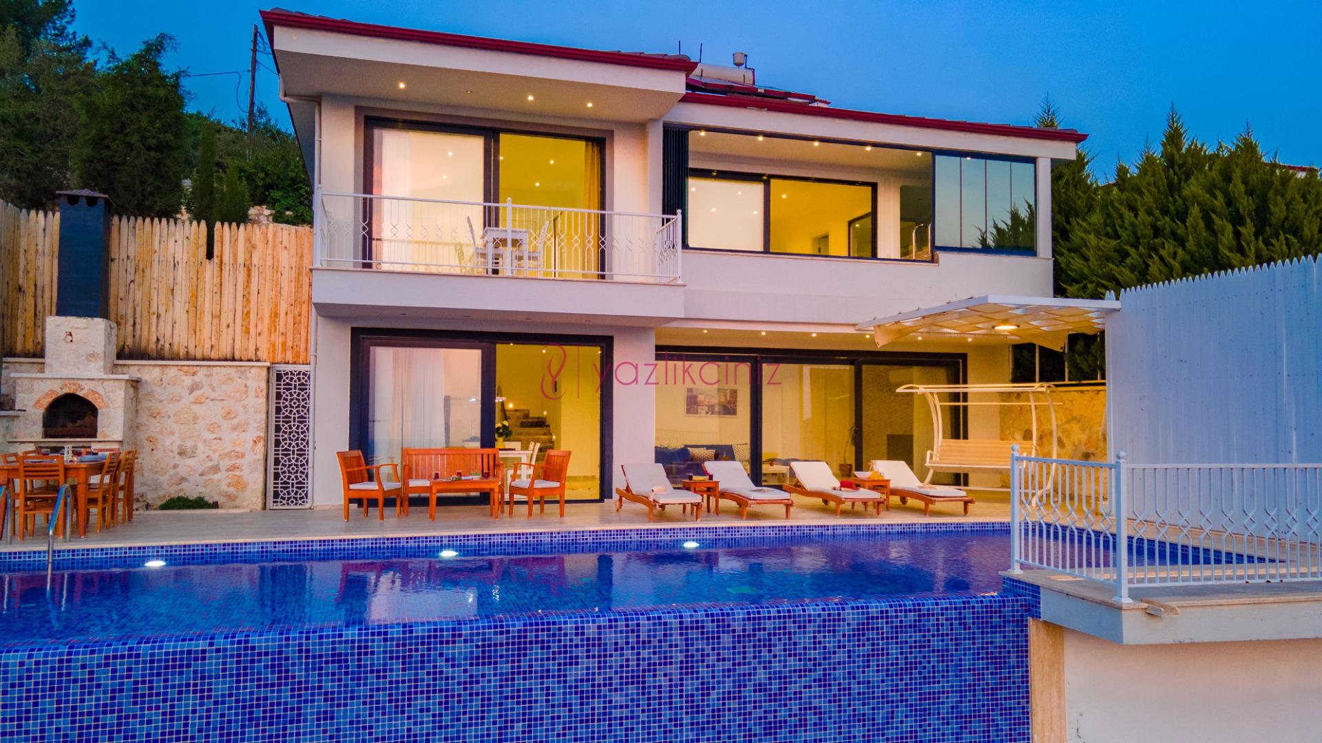 Villa Kaan, Kalkan’ın, Üzümlü Köyü'nde bulunan, 2 yatak odalı, 4 kişilik aile ve arkadaş grupları için ideal bir villadır. Patara’nın eşsiz manzarası ile gün batımının tadını çıkartabilirsiniz. Villa Kaan, ana yatak odasında bulunan kapalı ısıtmalı havuzu ile kış aylarında yapacağınız tatilinize keyif katacaktır. Açık havuzu korunaklıdır, dolayışı ile muhafazakar aile yapısına uygundur.