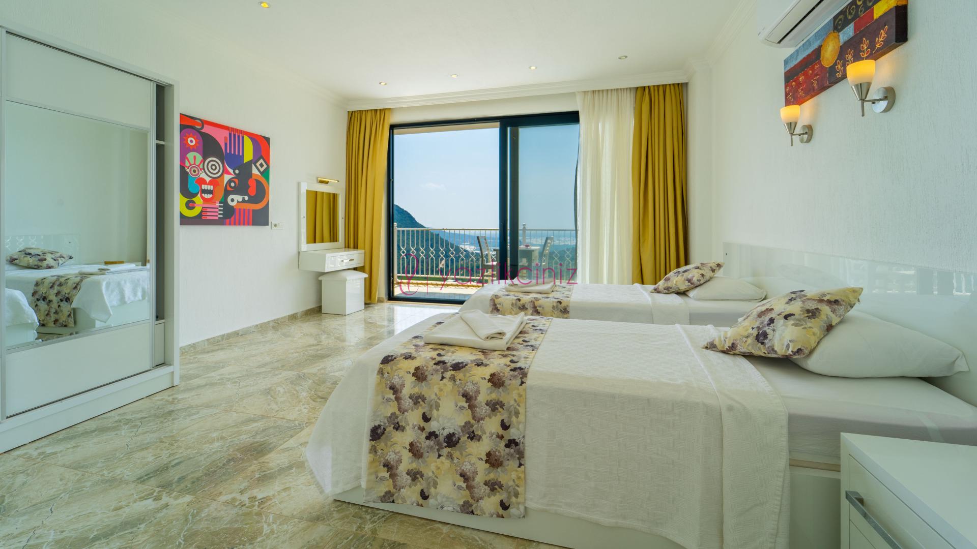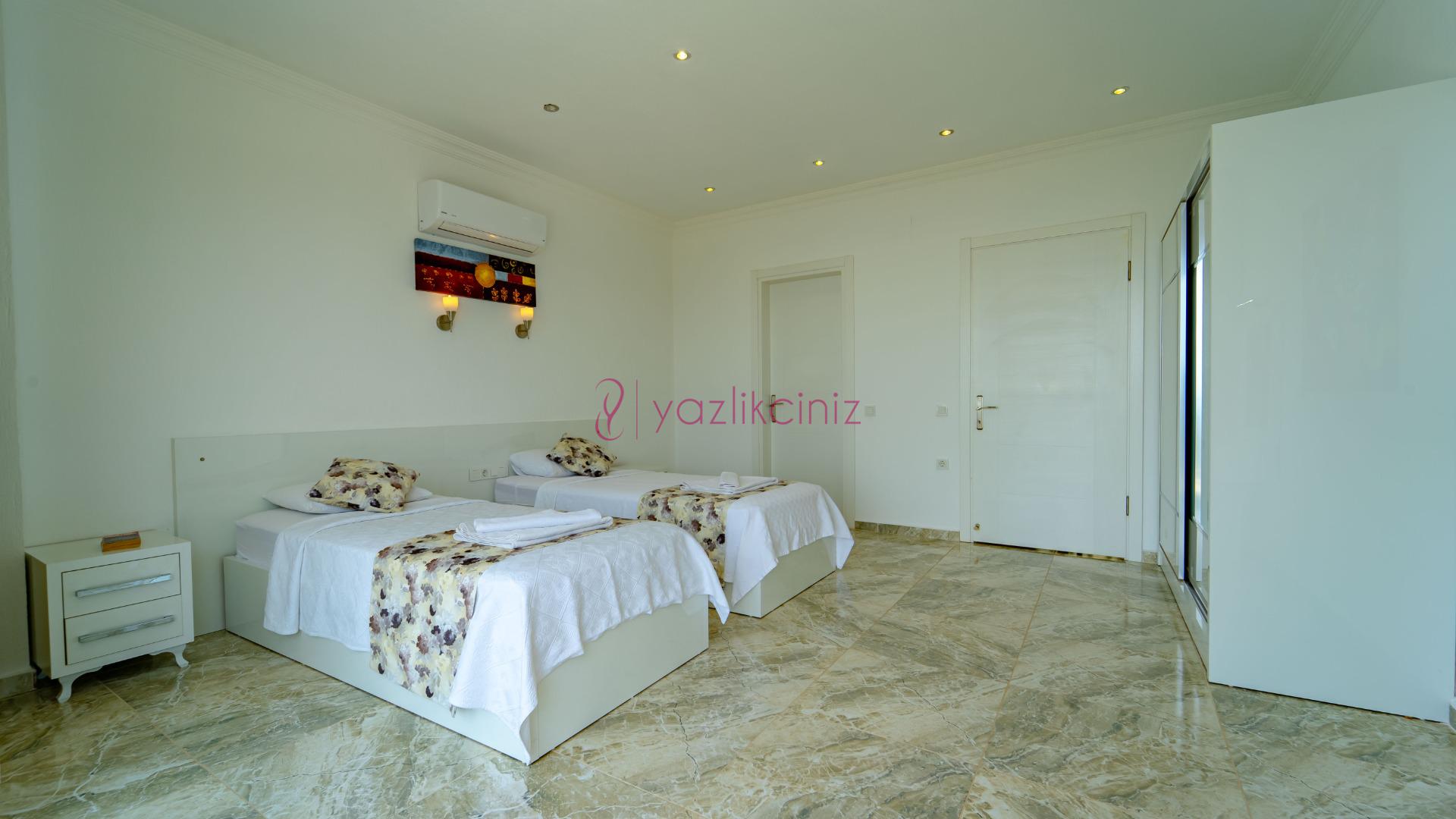 2. Yatak Odası: Suit Oda (Ebeveyn Banyolu), 2 adet tek kişilik yatak, klima, elbise dolabı, banyo ve tuvalet bulunmaktadır.