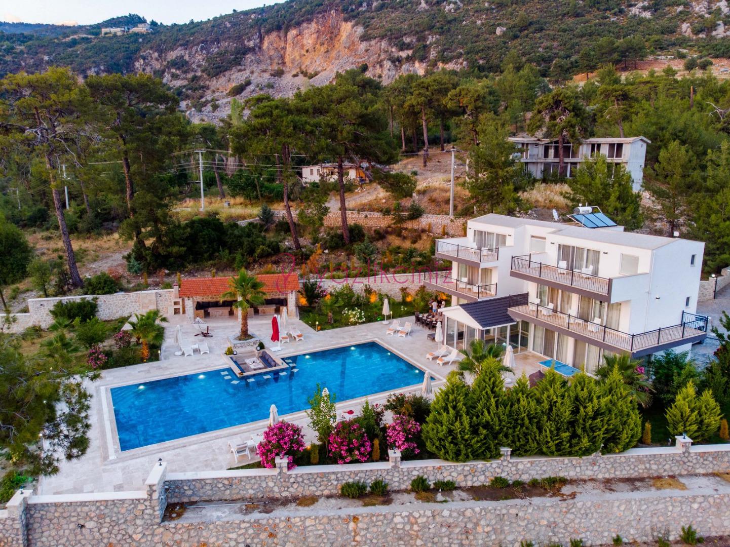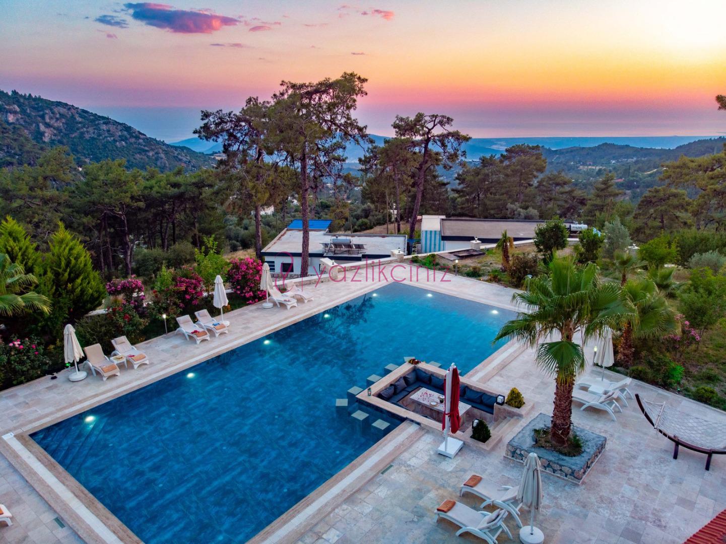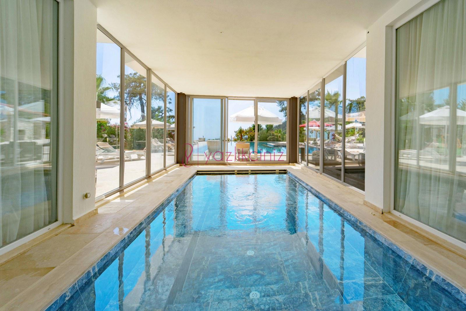 Kapalı ısıtma havuzlu geniş aile ve arkadaş grubu için dizayn edilmiş kiralık villa