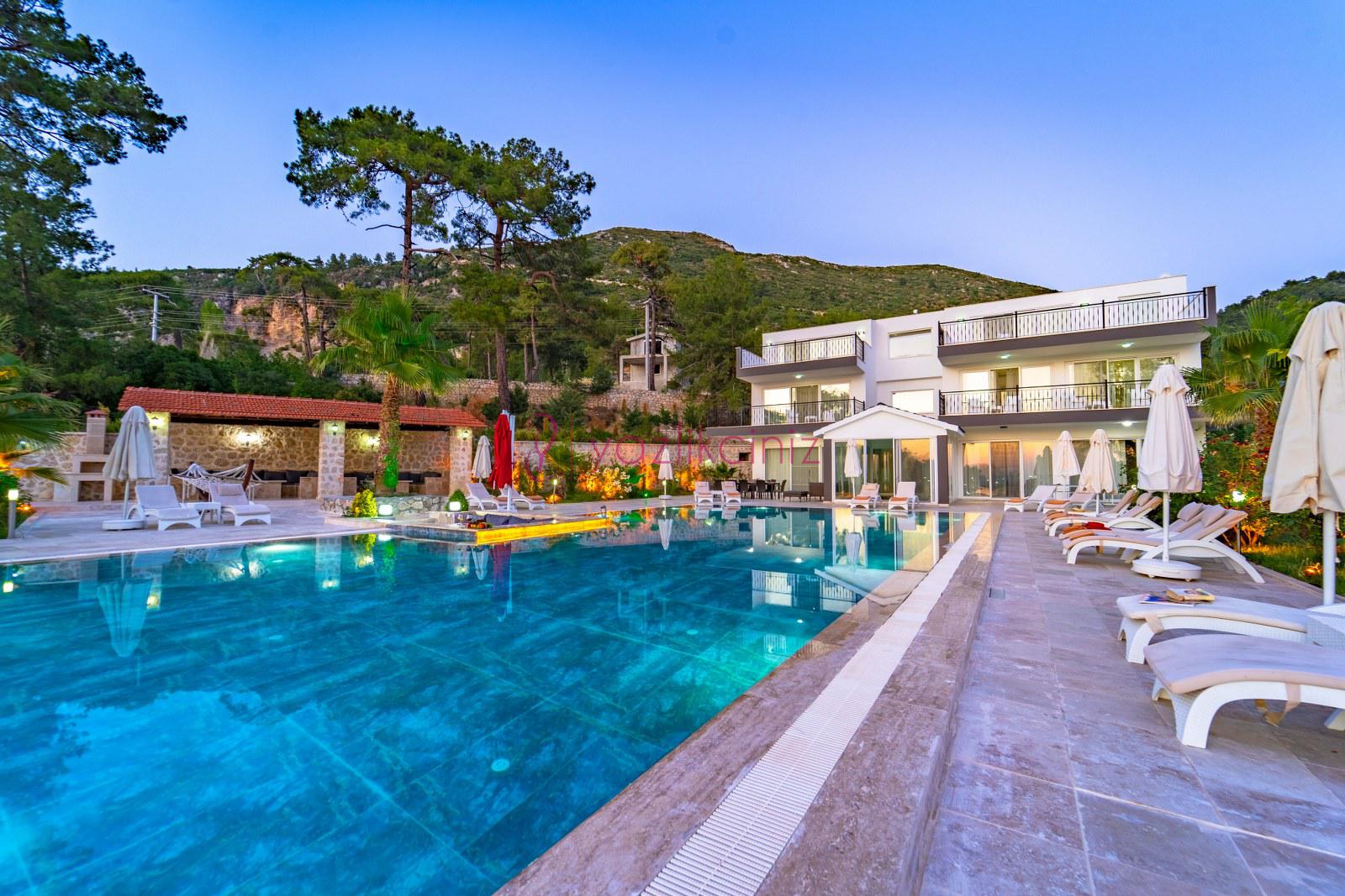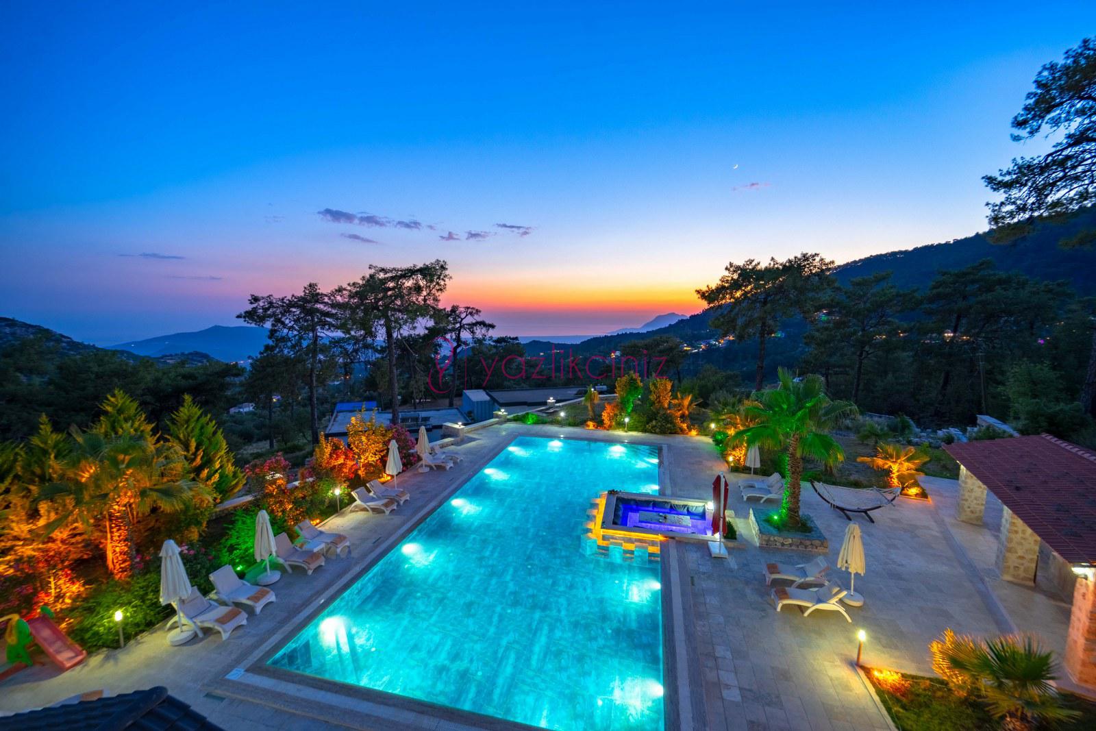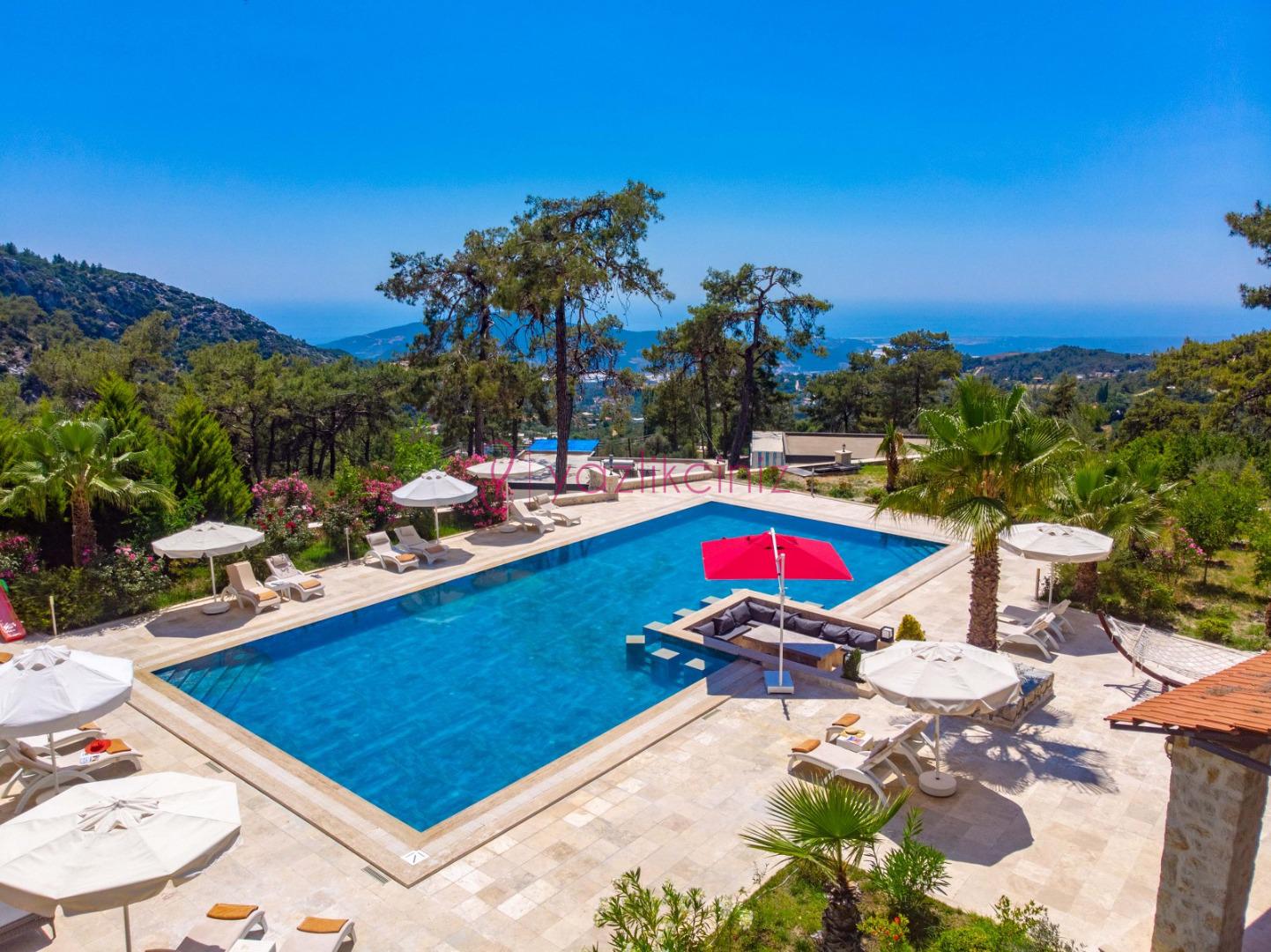 Kapalı ısıtma havuzlu geniş aile ve arkadaş grubu için dizayn edilmiş kiralık villa