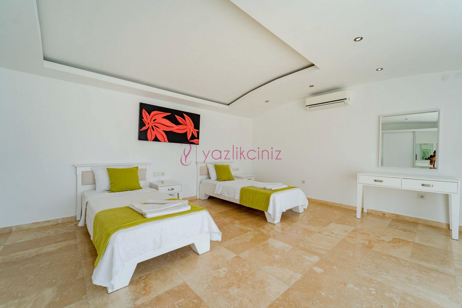 Yatak Odası 4: Suit doğa manzaralı odada 2 adet tek kişilik yatak, komodin, klima, makyaj masası, elbise dolabı, ebeveyn banyosu bulunmaktadır.