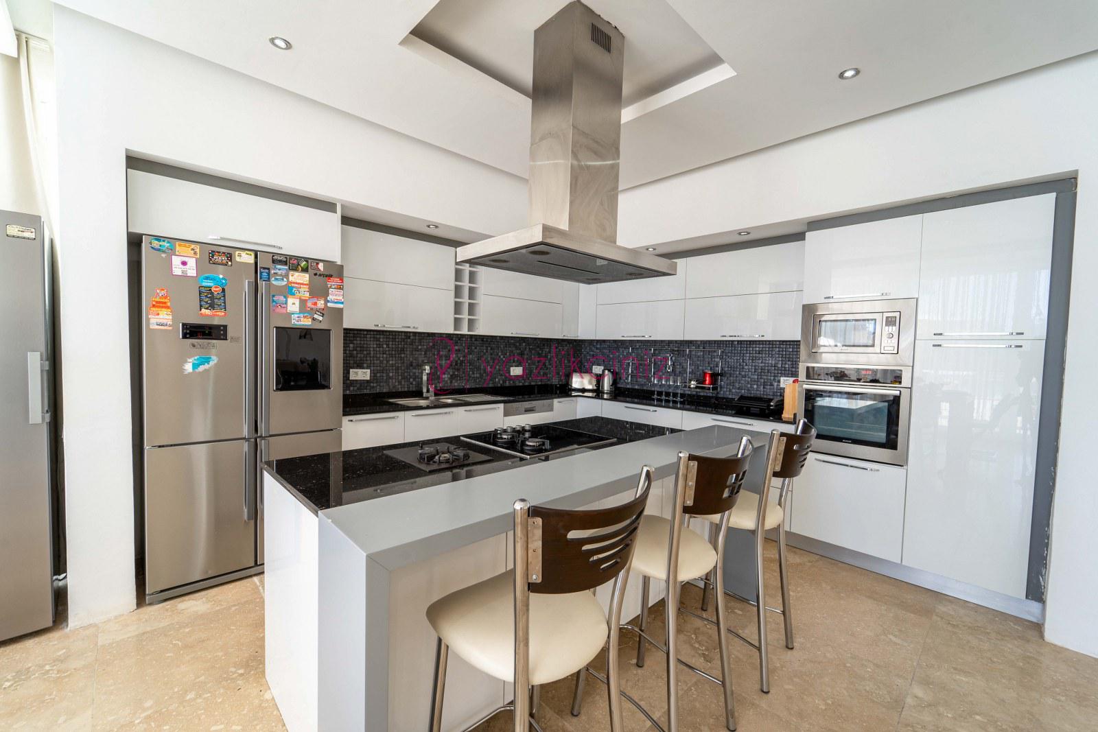 Buzdolabı, çamaşır makinesi, bulaşık makinesi, fırın, mikrodalga fırın, elektrikli su ısıtıcısı, ekmek kızartma makinesi, yemek takımı, mutfak araç ve gereçleri bulunmaktadır.