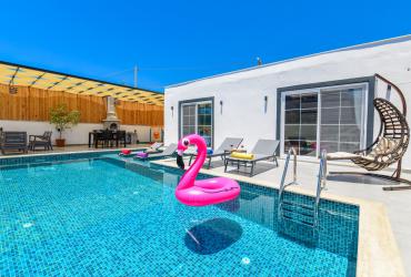 Terasında özel yüzme havuzu, şezlonglar, güneş şemsiyeleri, masa ve sandalyeler, pergola, mangal bulunmaktadır.