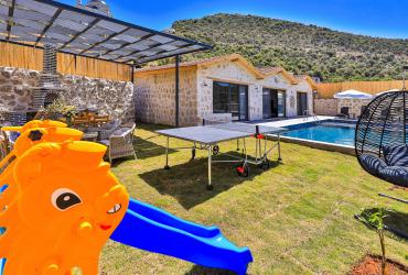 Terasında özel yüzme havuzu, şezlonglar, güneş şemsiyeleri, masa ve sandalyeler, pergola, mangal bulunmaktadır.