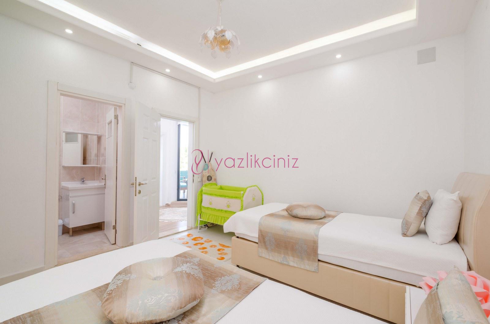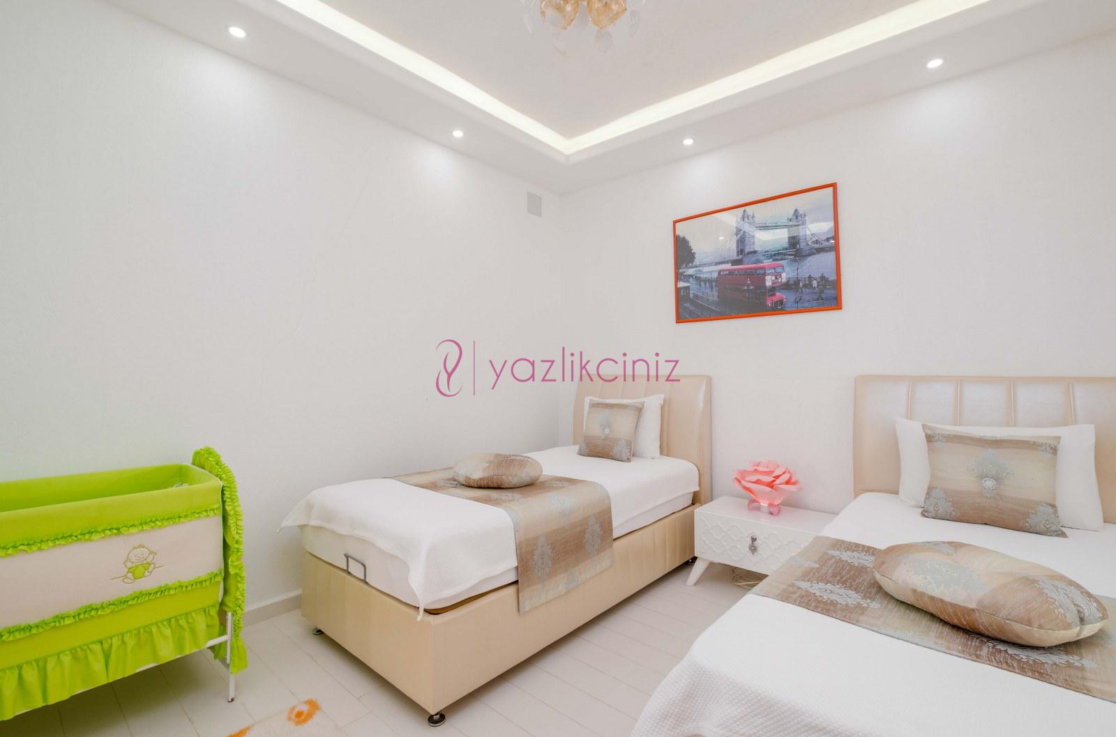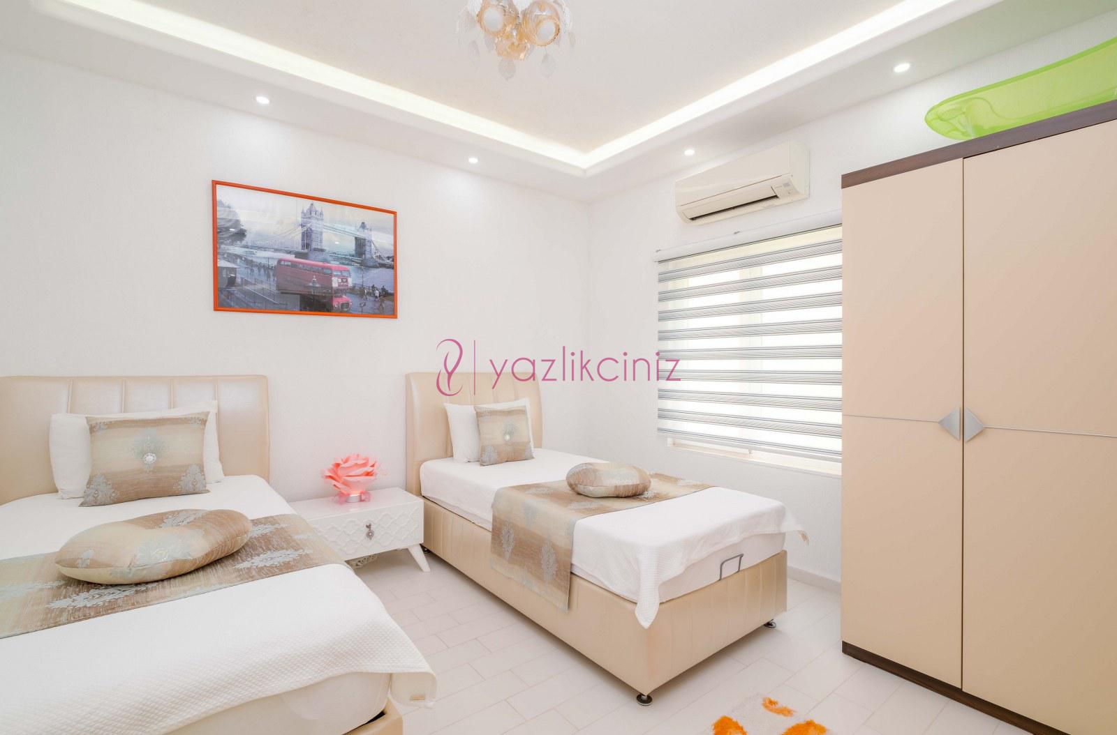 2. Yatak Odasi: 2 adet tek kisilik yatak, makyaj masasi, elbise dolabi, klima, banyo, tuvalet ve balkon bulunmaktadir.