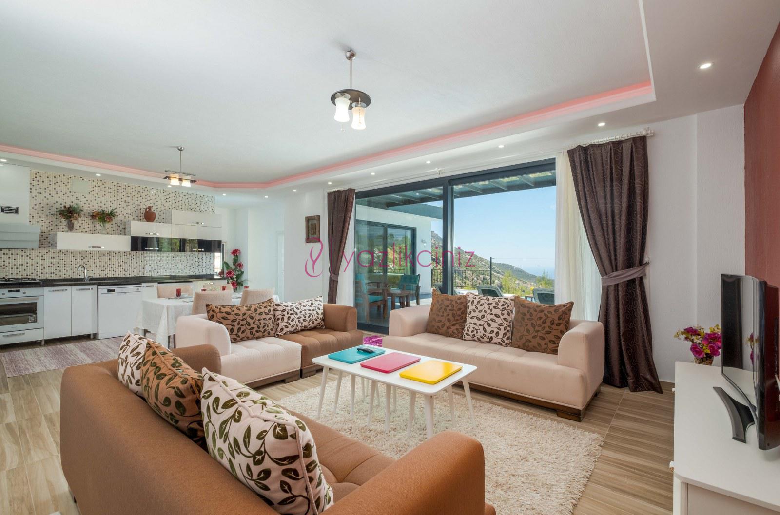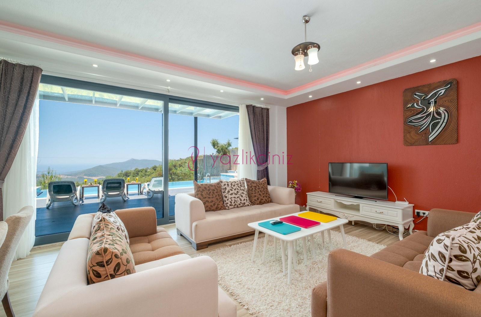 Oturma Grubu, sehpa, uydu, TV (LCD), Internet, Klima, 6 Kisilik Yemek Masasi, su sebili, Havuz Terasina Çikis