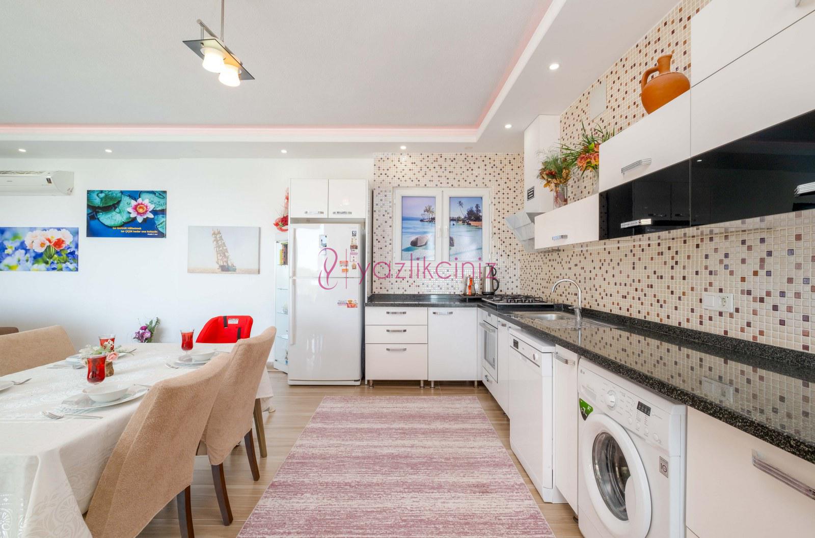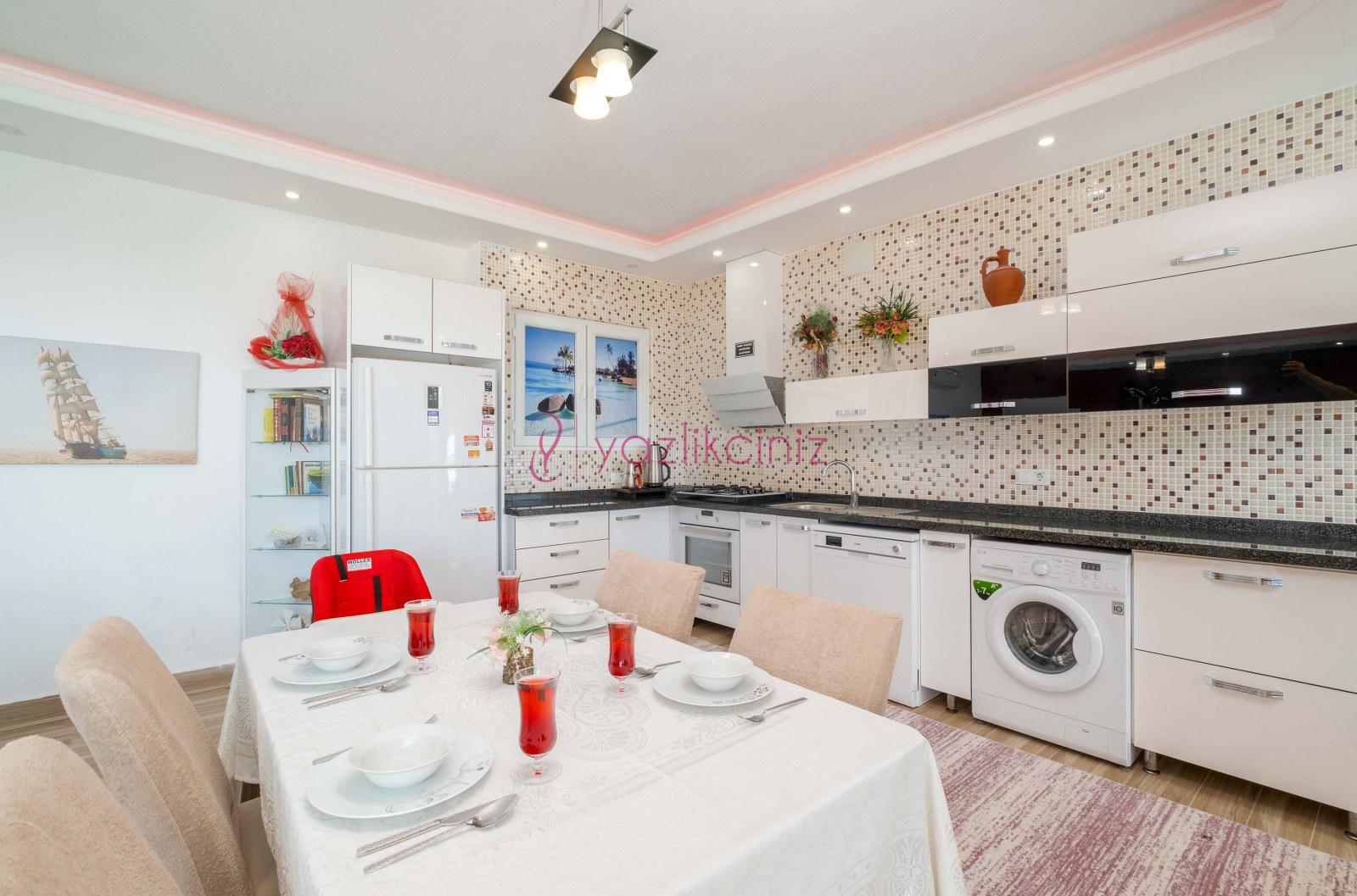 Modern Dizayn Edilmis Amerikan Mutfak, Buzdolabi, Bulasik Makinesi, Çamasir Makinesi, Firin, 4’lü Ocak (ankastre), Mikrodalga Firin, Elektrikli Su Isitici(kettle), Tost Makinesi, Tava & Tencere vb. Mutfak Ekipmanlari, 4 Kisilik Yemek Takimi