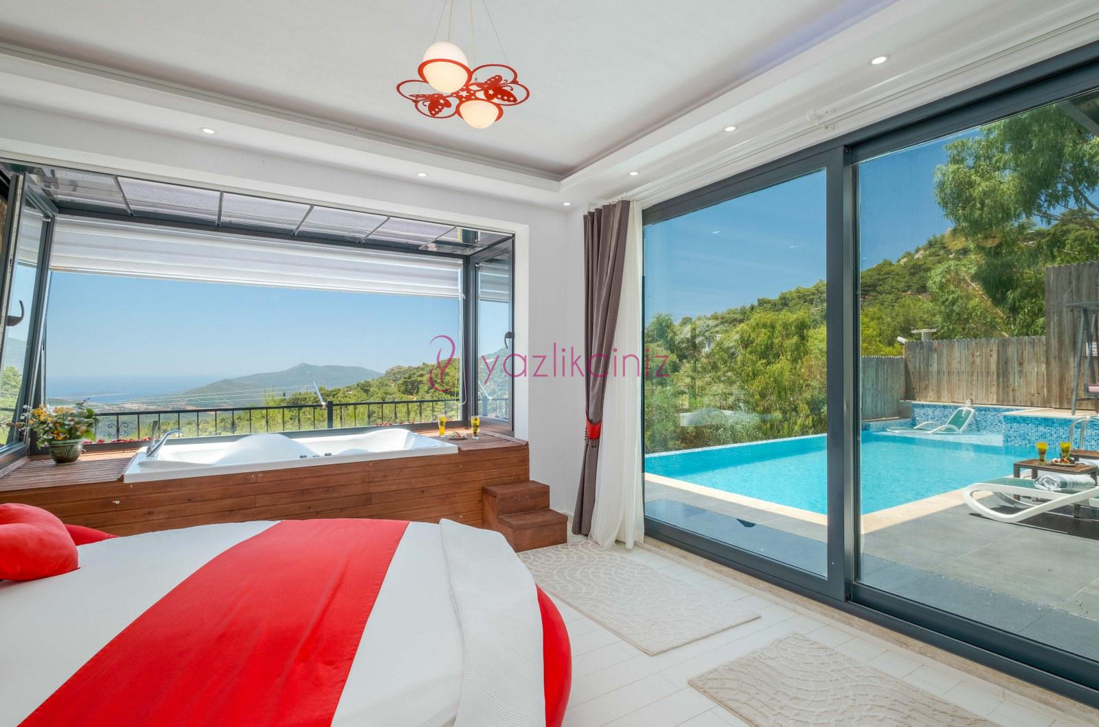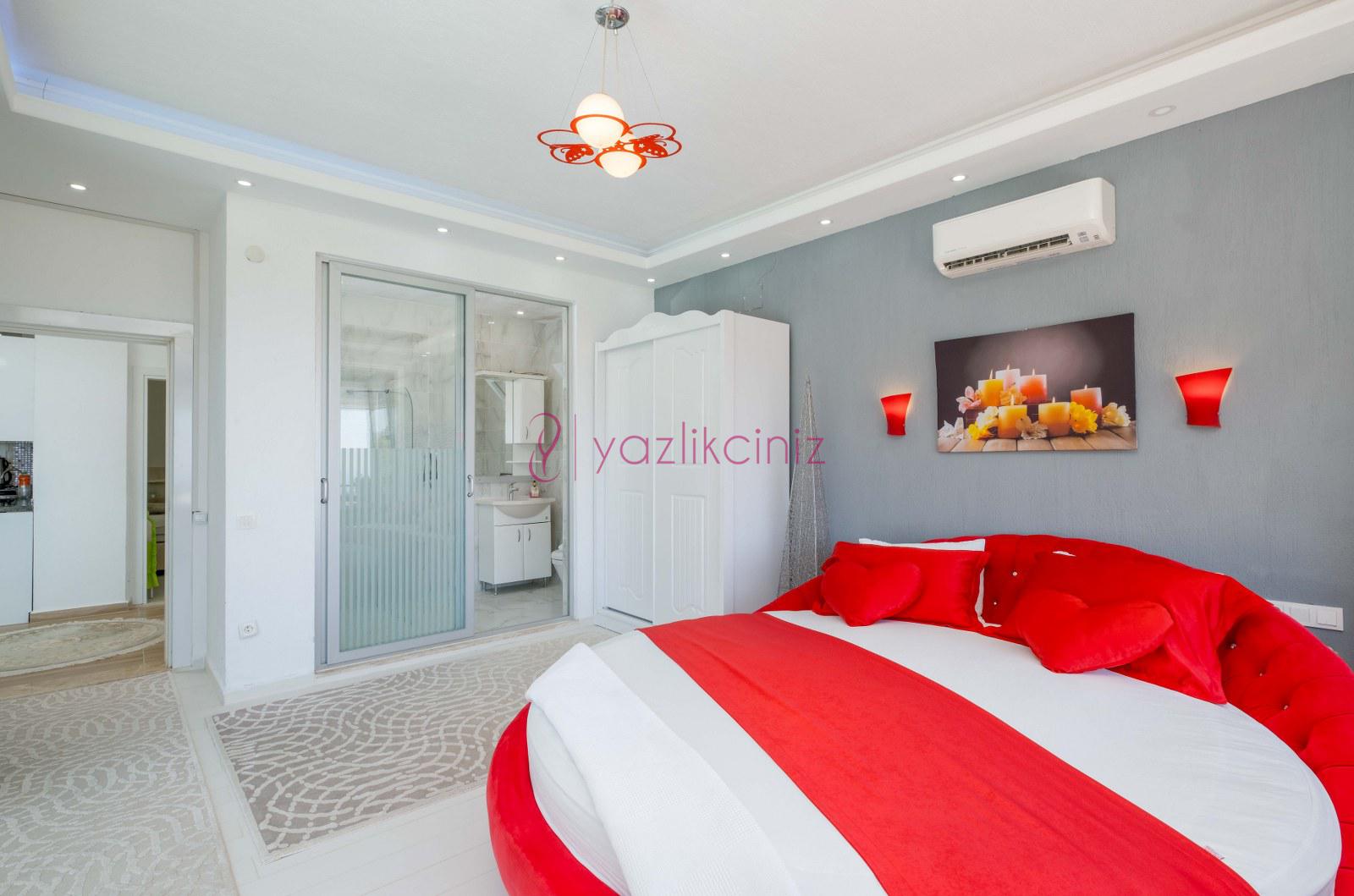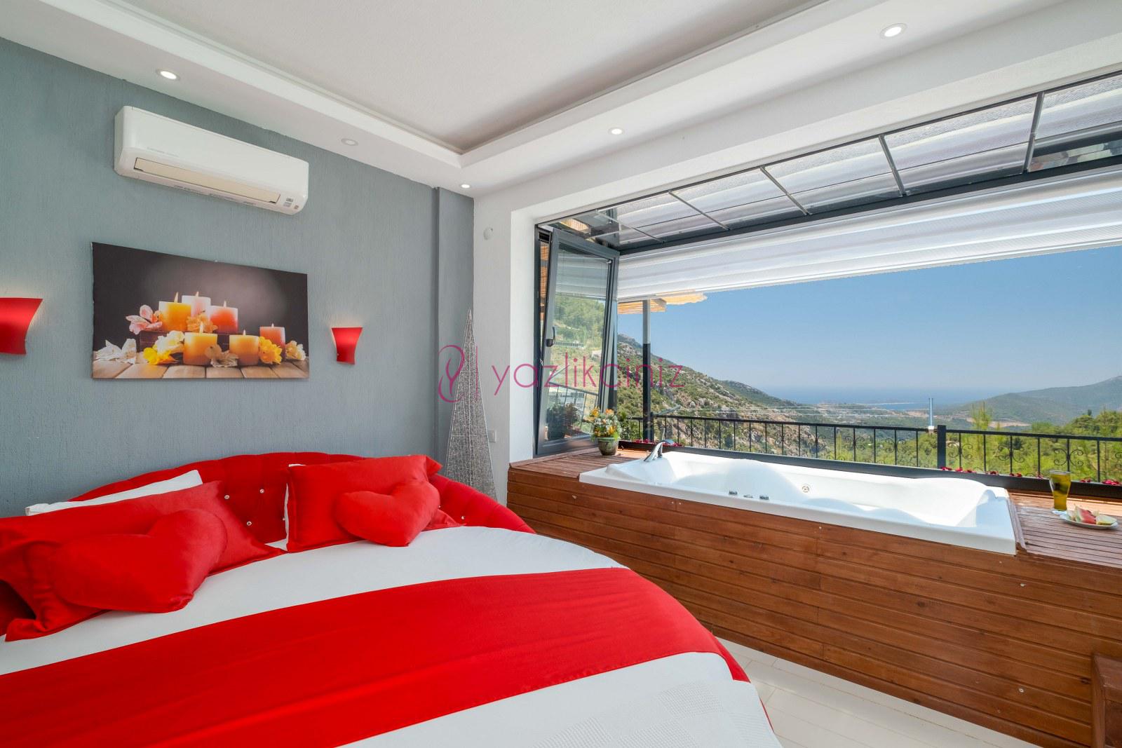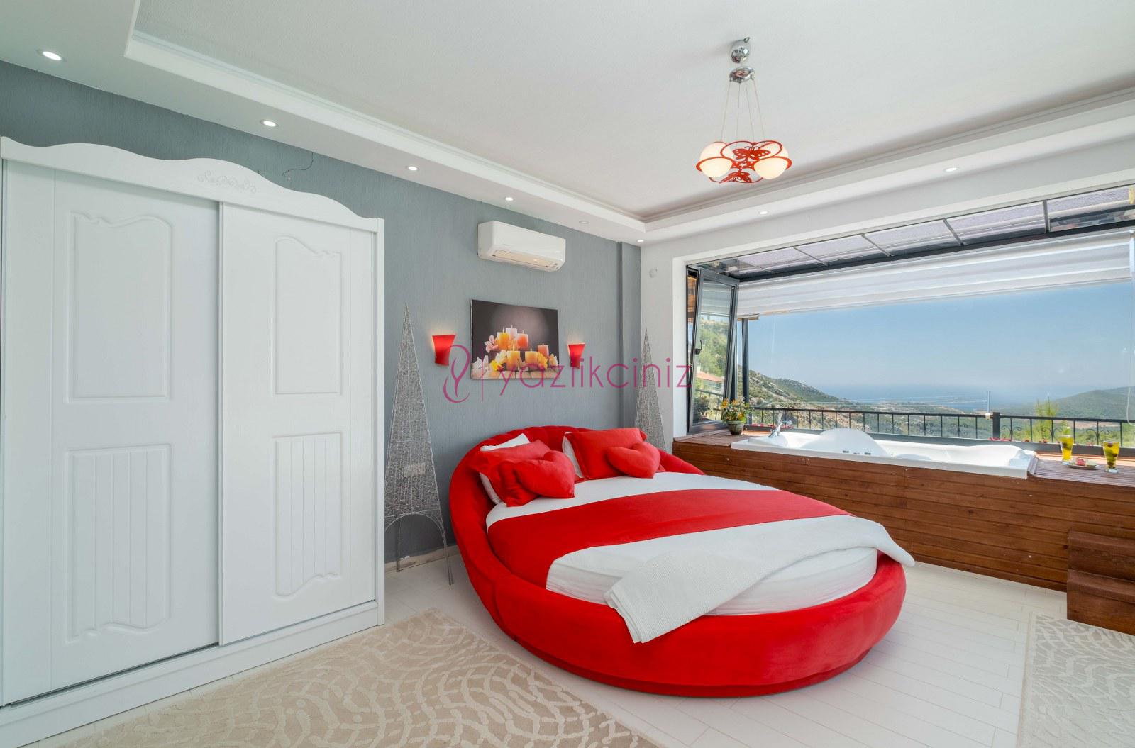 1. Yatak odasi: En süit odada çift kisilik yatak, makyaj masasi, klima, elbise dolabi, komodin, jakuzi, tuvalet, banyo ve balkon bulunmaktadir.
