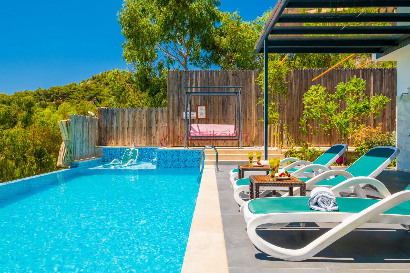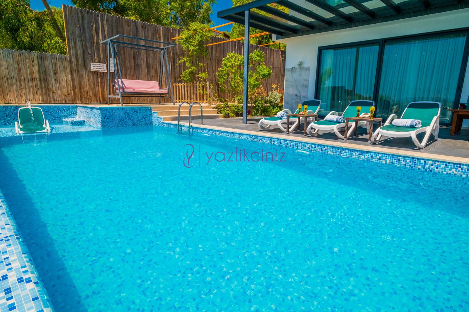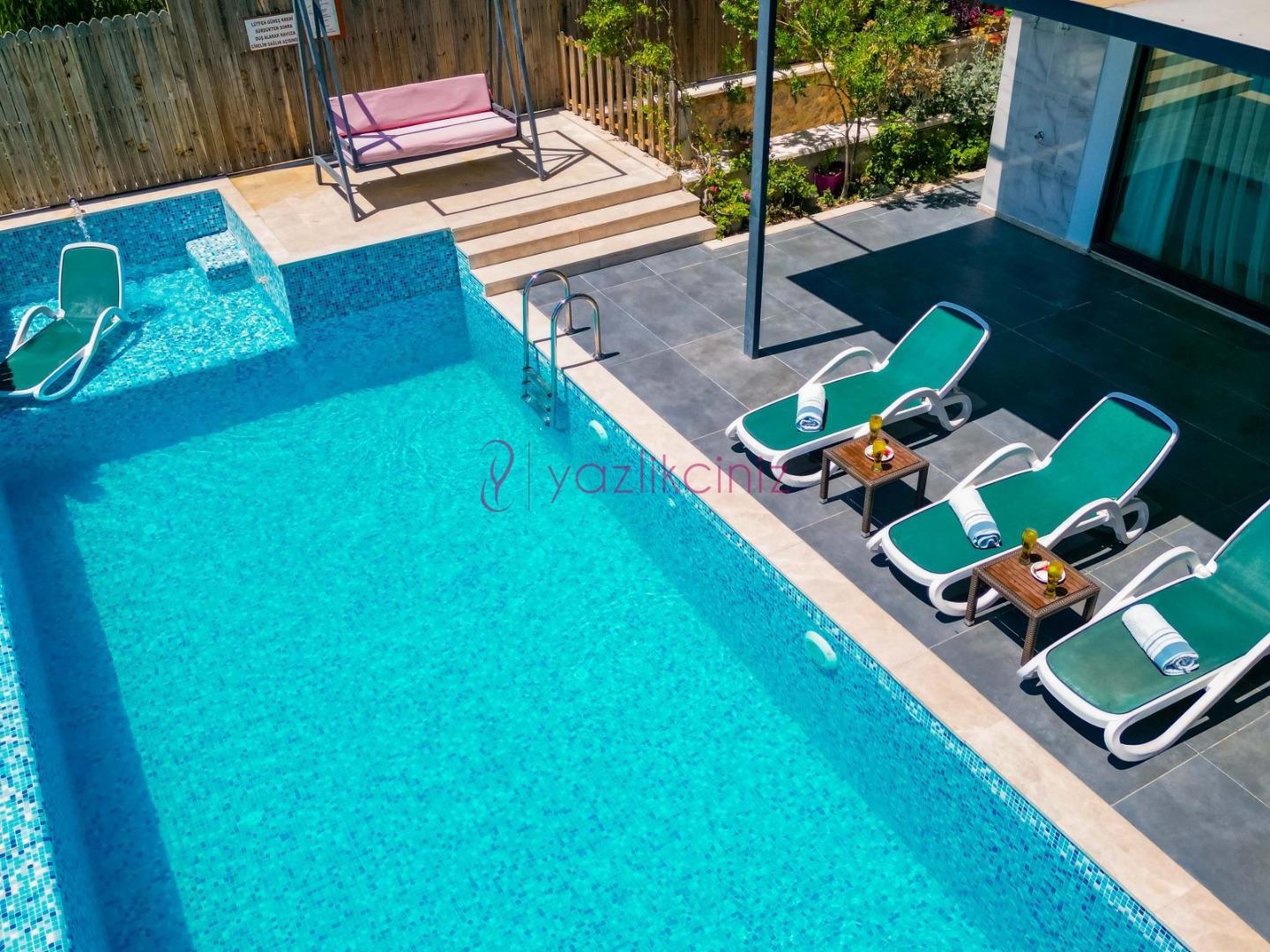 Özel Bahçe, Özel Yüzme Havuzu, Güneslenme Alani, 4 Adet Sezlong, Semsiye, Oturma Grubu, 6 Kisilik Yemek Masasi, Barbekü, Salincak