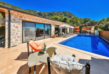 Villa Keçeli, 2 yatak odalı, 4 kişi kapasiteli, balayı çiftleri ve aileler için uygun bir seçenektir. Taş mimarisi ve zevkli tasarımıyla son derece modern ve şık dizayn edilmiş, misafirlerin rahatlığı için bütün detaylar dikkate alınarak döşenmiştir. Doğanın içerisinde muhteşem deniz ve doğa manzarasına sahip, içinde sessizliğin, huzurun buluştuğu essiz korunaklı ve doğal bir konuma sahiptir. Havuz terasında eşsiz manzaranın keyfini çıkarabilir, bahçesinde langırt, masa tenisi, salıncak gibi aktivite seçenekleriyle eğlencenize eğlence katabilir, saunasında bütün yılın yorgunluğunu unutabileceğiniz bir villadır. Bir odası jakuzili olan villamızda. İki yatak odası bulunmakta olup, oldukça geniş tutulan bahçe ve tahta havuz terasına sahiptir. Villamızın havuzu korunaklı olup, siz değerli misafirlerimizin keyifli bir tatil geçirmesi için tasarlan mistir. Unutulmaz anılar biriktireceğiniz villa Keçeli, sizleri beklemektedir.