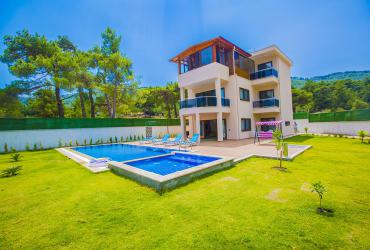 Muhafazakâr doğa içerisinde korunaklı havuzlu kiralık villa, 8 kişilik 4 yatak odalı
