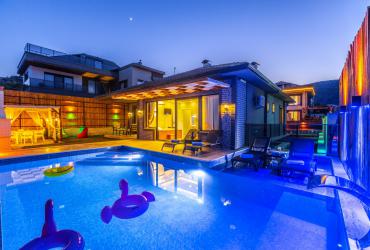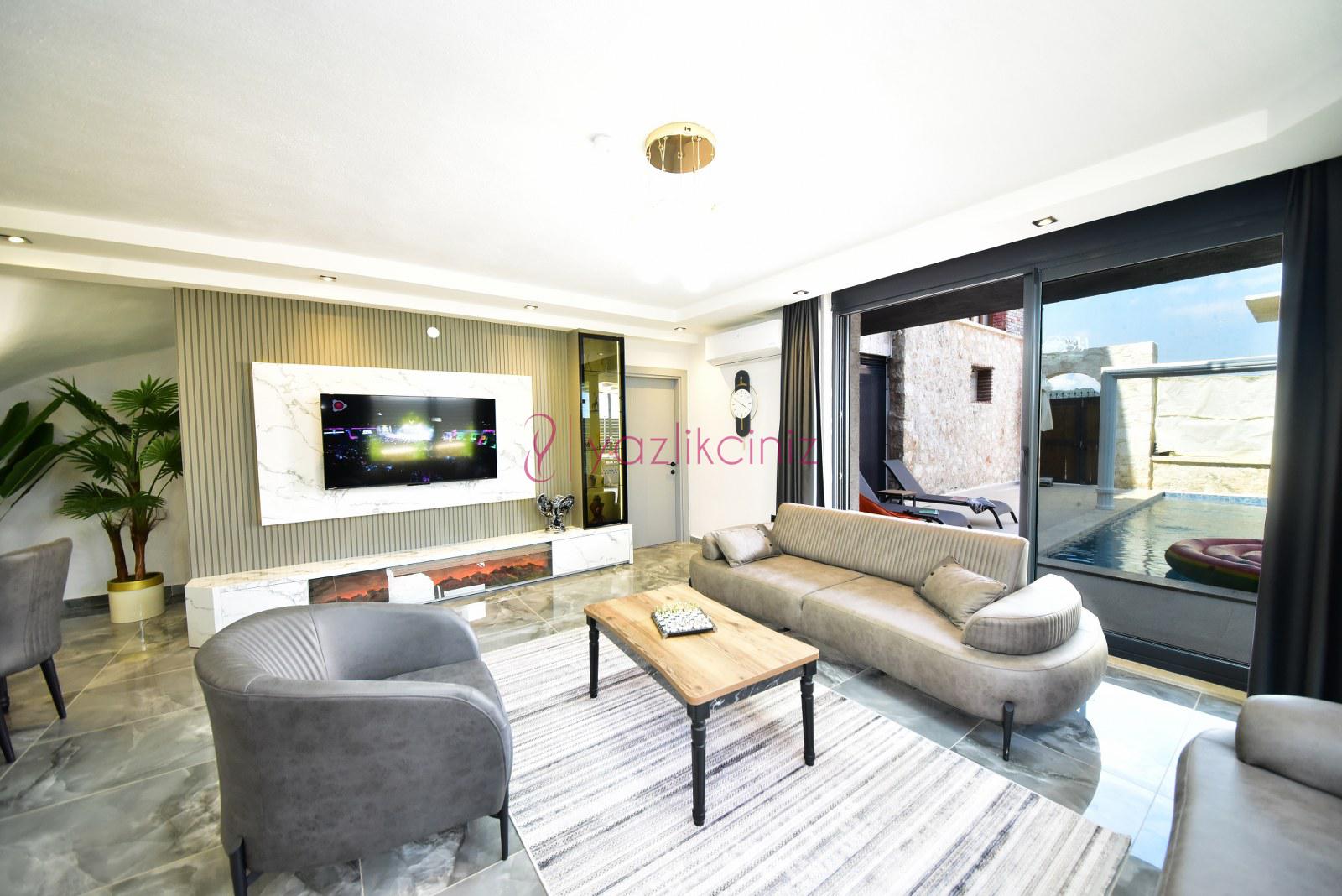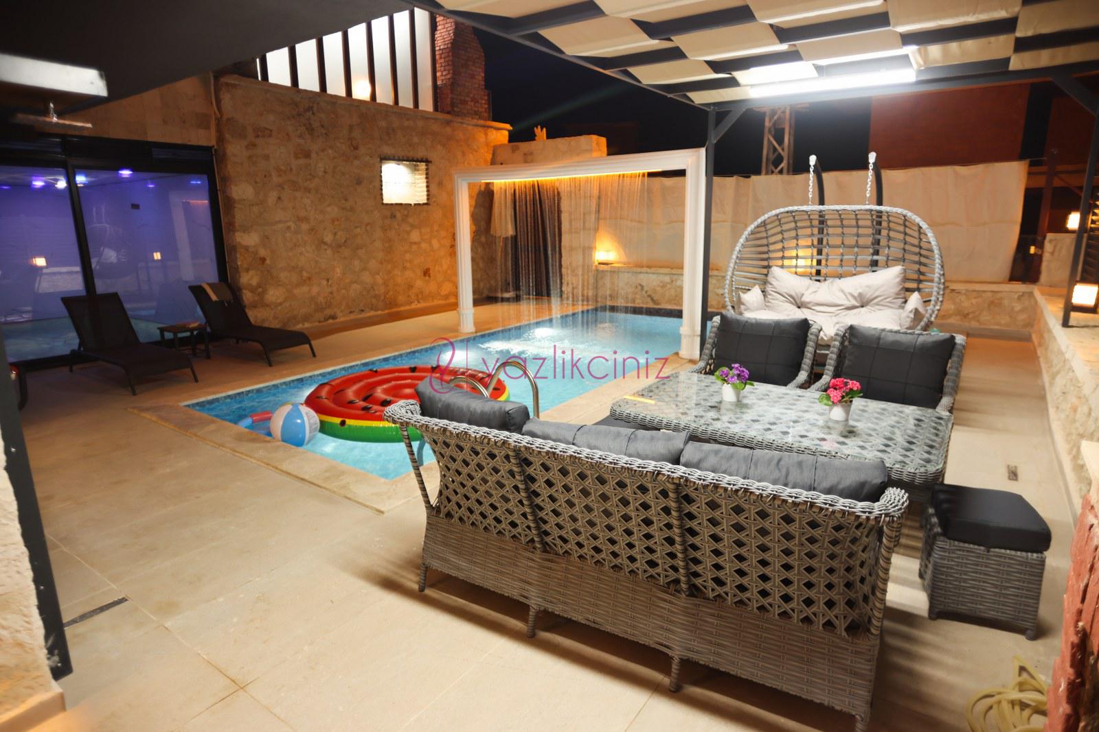 Korunakli, lüks, kapalı ısıtmalı havuzlu, jakuzili, kiralık tatil villası