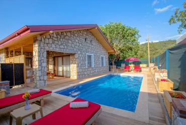 Villa Lusi Duo, muhafazakar, çocuk havuzlu tatil villası seçeneklerimizdendir. Tarih dokusu ile ünlü muhteşem Fethiye Kayaköy de bulunan Villa Lusi Duo, 2 adet yatak odasına ve 2 banyoya sahip olup 4 kisi konaklama kapasitesine sahiptir. 2 yatak odasında 1 çift kişilik ve 2 tek kişilik yatak bulunmaktadır. Açık plan oturma/yemek odası ve mutfak bölümünden, dışarıdan görünmeyecek şekilde tasarlanmış yüzme havuzu ve mangal/veranda alanına geçilir. Essiz bir tatil için villa Lusi Duo siz değerli misafirlerimizi beklemektedir.