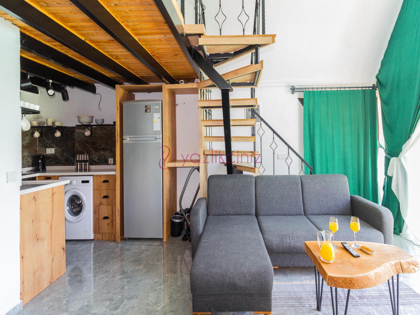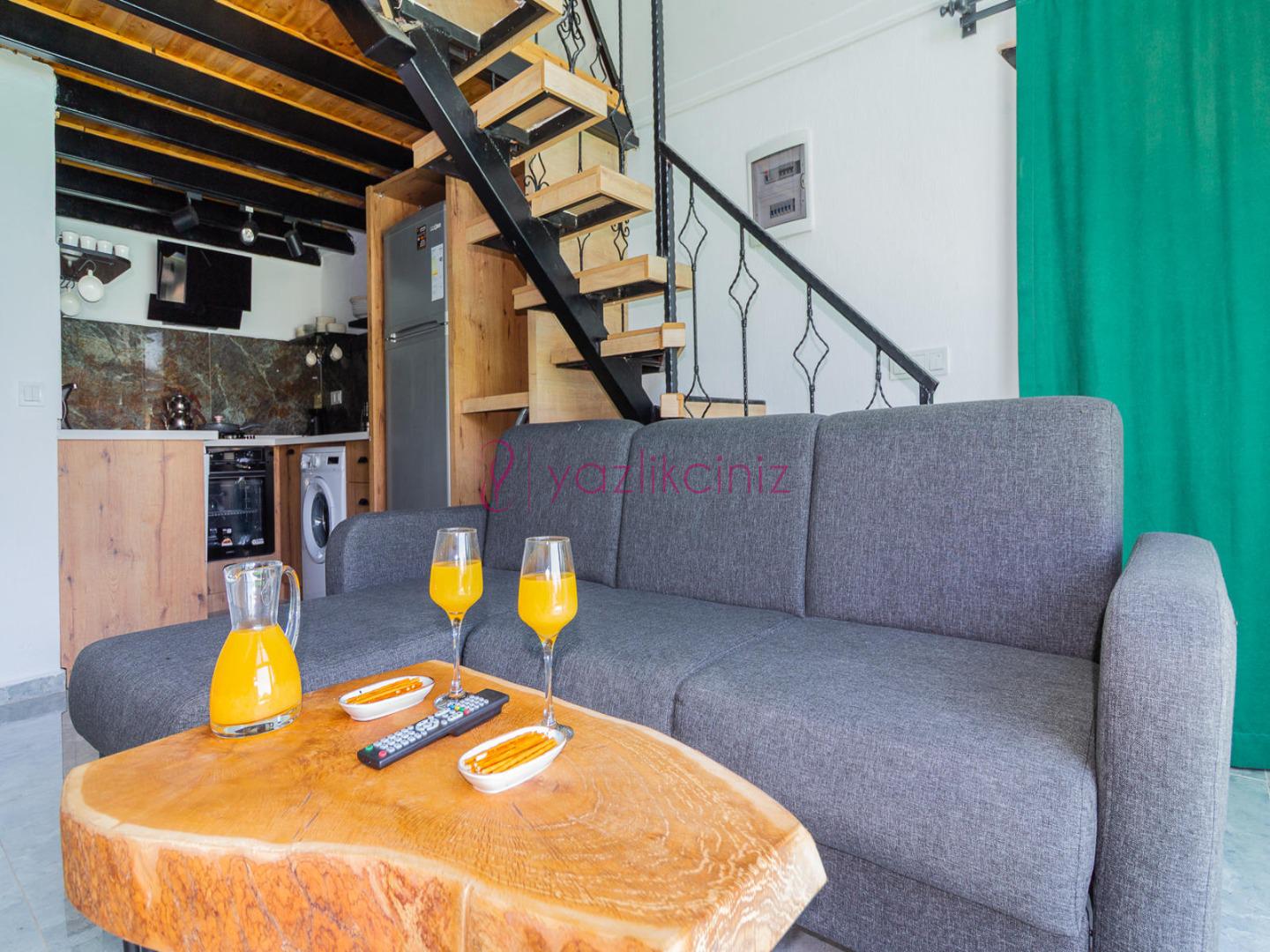 Salon içerisinde oturma grubu, televizyon, klima, sehpa, internet bulunmaktadır.