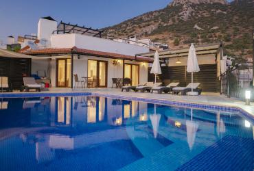 Villa Merit Kalkan Akbel mevkiinde bulunan 3 yatak odasi ile 7 kisi kapasitelidir. Muhtesem kalkan koyu ve adalar manzarali villamizda keyifli vakit geçirmek için hemen kiralama yapabilirsiniz. Özel havuzlu ve etrafi kapali bir sekilde düzenlenen kiralik villamiz özellikle balayi çiftlerimiz ve arkadas gruplari için ideal bir villamizdir. Villamizda salincak portatif mangal bulunan bulunmaktadir.