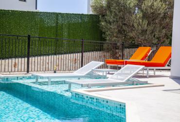Havuz Terasında şezlong, şemsiye, oturma grubu, mangal bulunmaktadır.