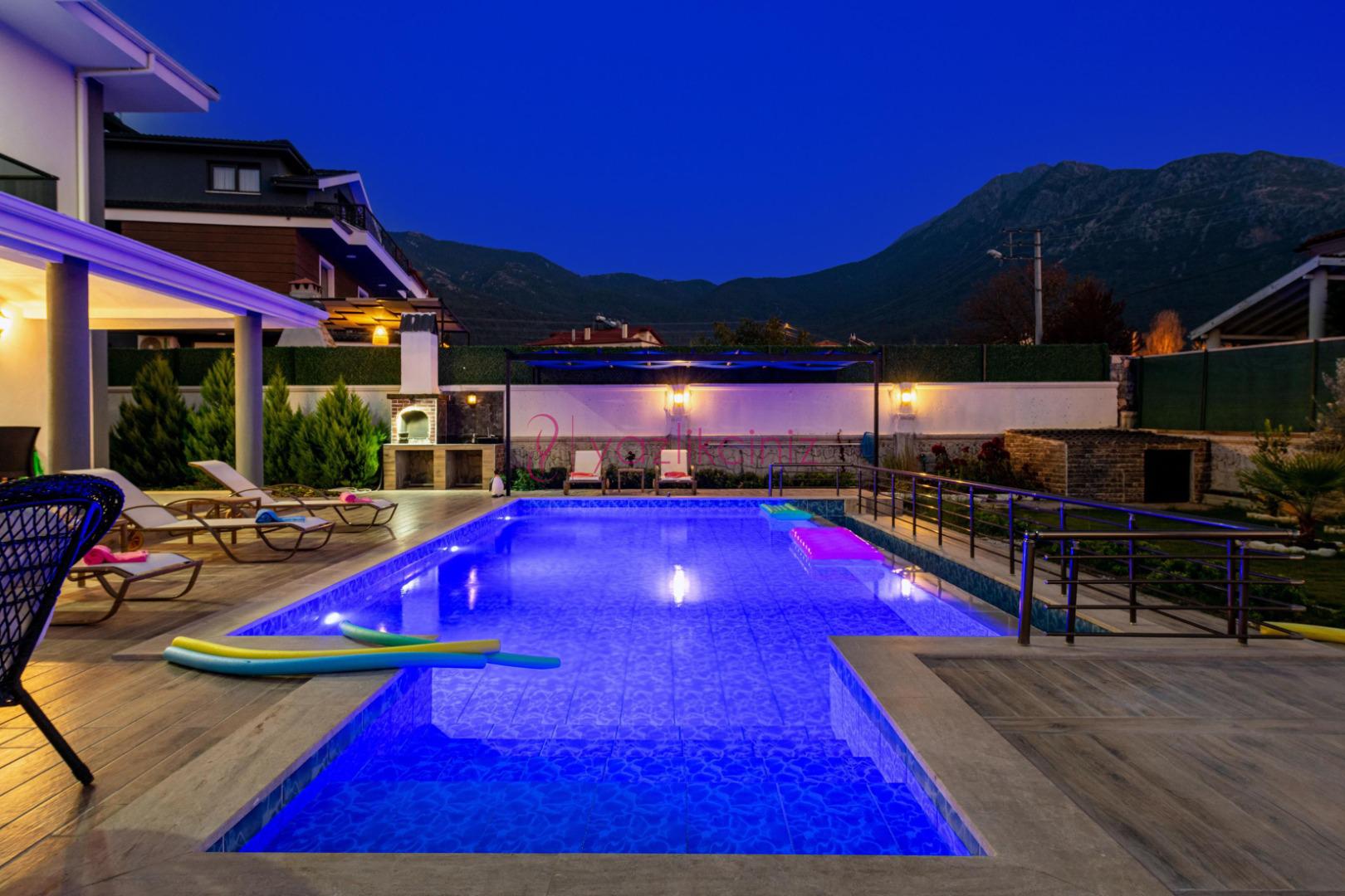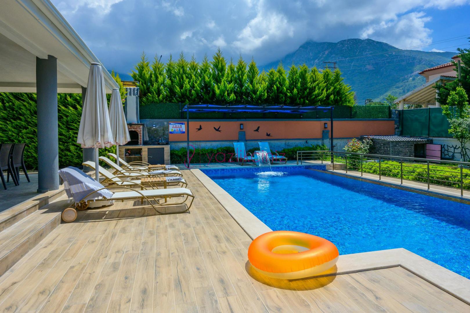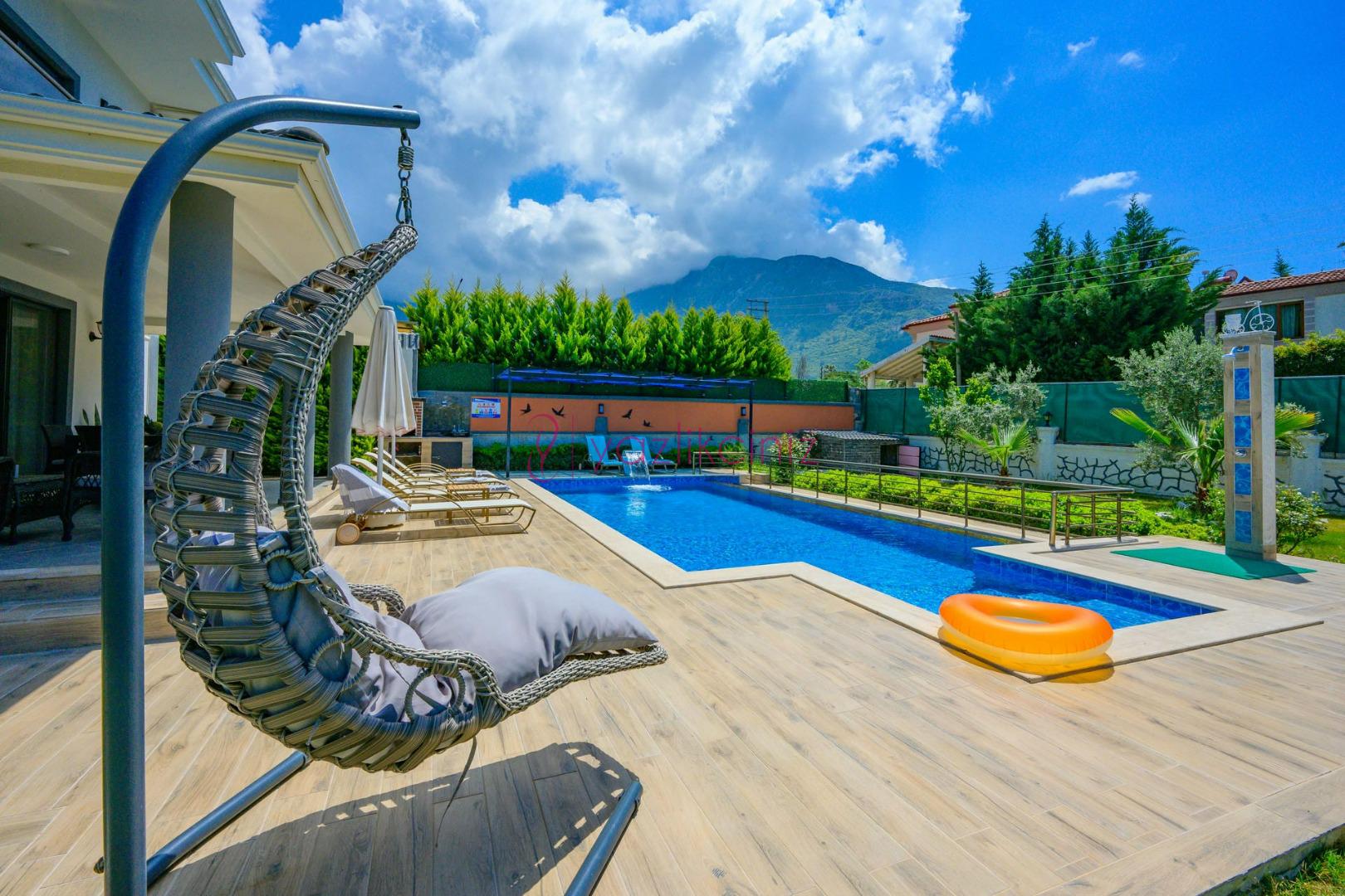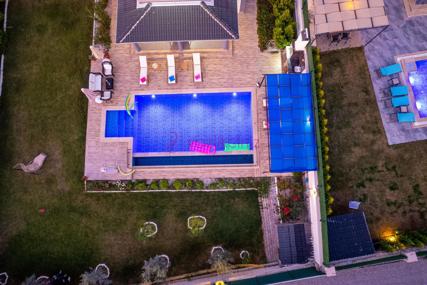 Özel bahçe içerisinde, Boyu 8 m Eni 4 m Derinlik: 150 cm ölçülerinde özel yüzme havuzu yer almaktadır.