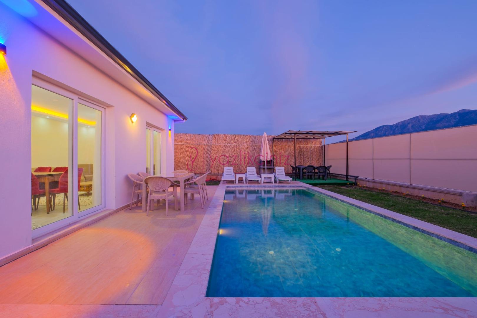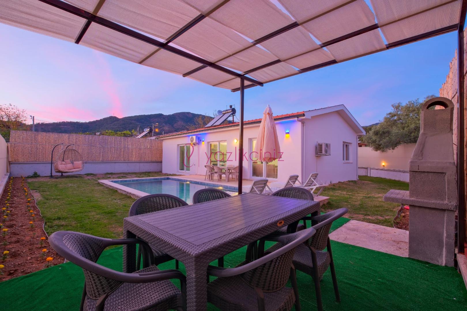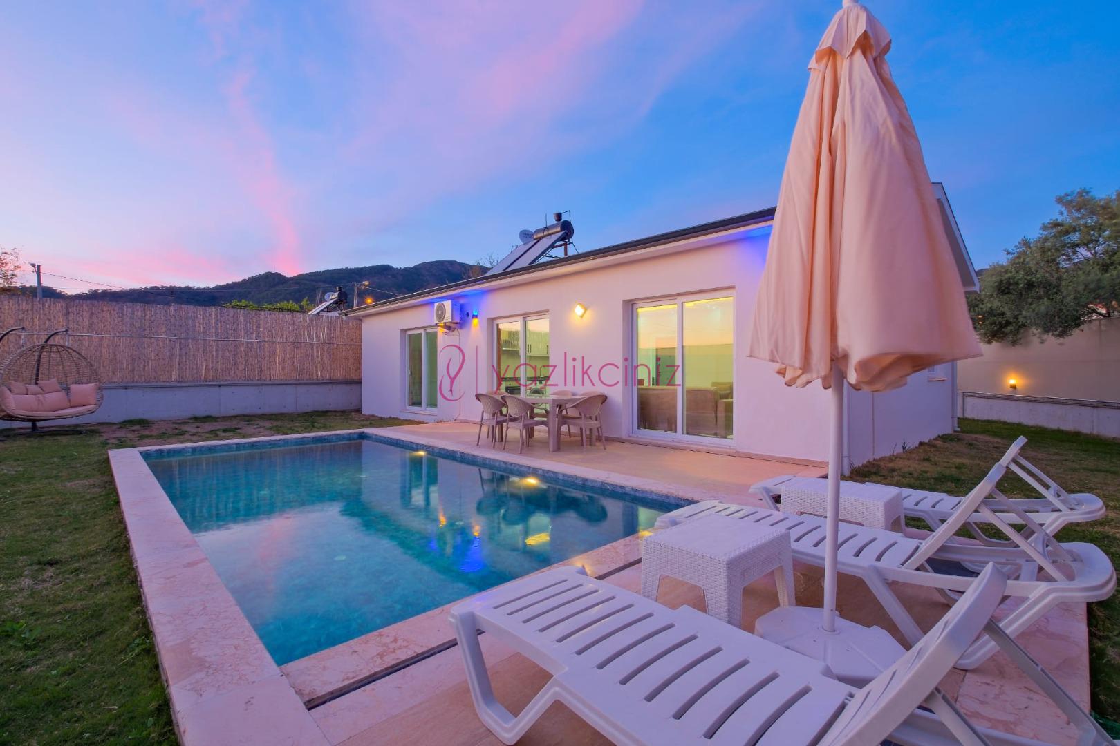 Fethiye Eldirek mevkiinde yer alan Villa Motto, 6 kişi kapasiteli 3 yatak odalıdır. Lüks ve modern dizayn edilmiş villamızın her iki yatak odasında tek kişilik yataklar mevcuttur. Şehrin gürültüsünden uzak, doğa içerisinde yer alan villamızda geniş aile ve arkadaş gruplarına özel olan villamızda huzurlu bir tatil sizleri bekliyor.