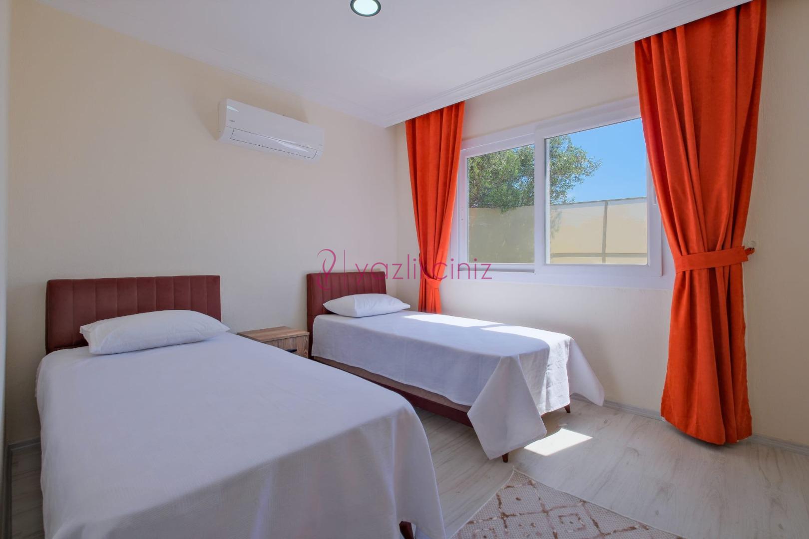 2. Yatak Odası: 2 adet tek kişilik yatak, klima, komodin, elbise dolabı, makyaj masası,tuvalet banyo ortak bulunmaktadır.