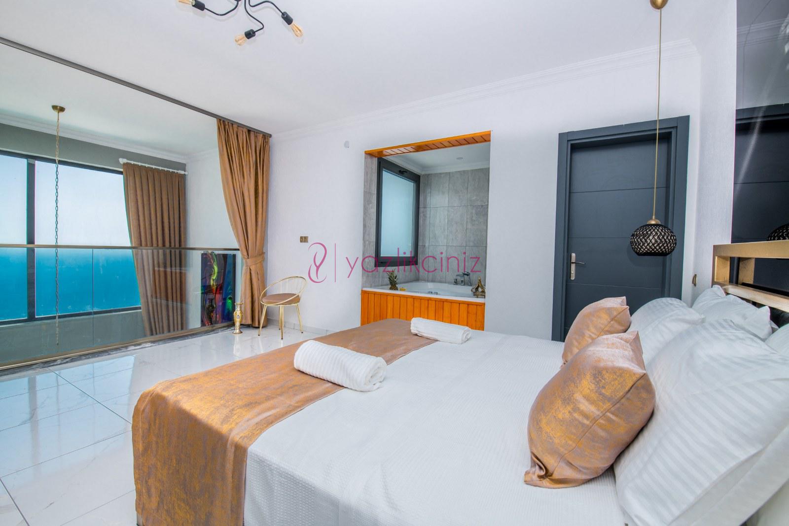 1. Yatak odası: 1 adet çift kişilik yatak, jakuzi, televizyon, klima, komodin, makyaj masası, elbise dolabı, banyo tuvalet bulunmaktadır.