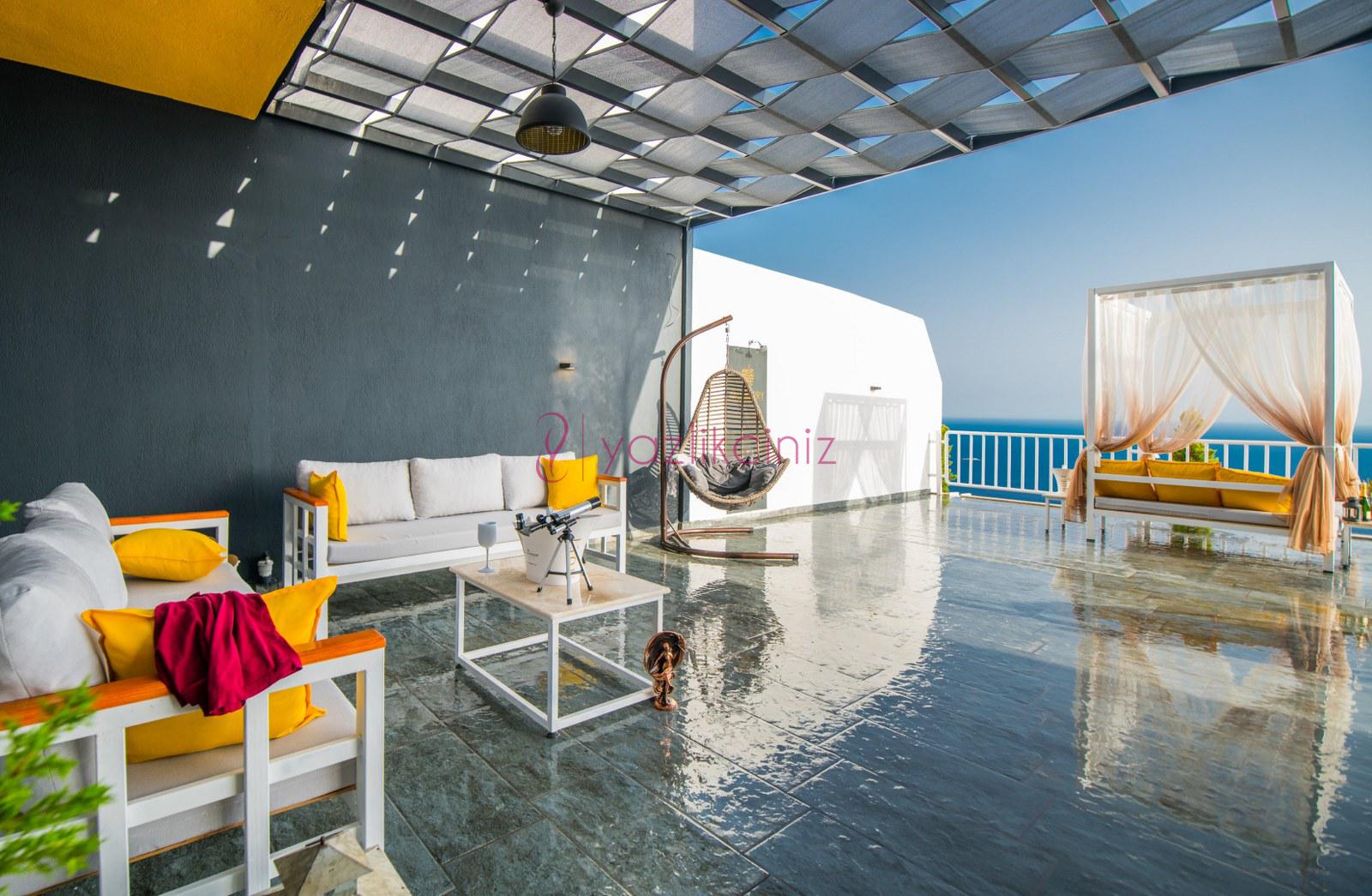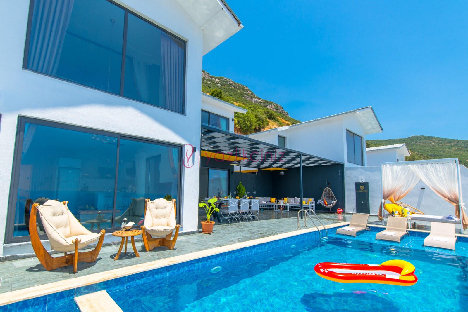 Havuz terasında şezlong, şemsiye, yemek masası, salıncak, bahçe oturma grubu, duş bulunmaktadır.