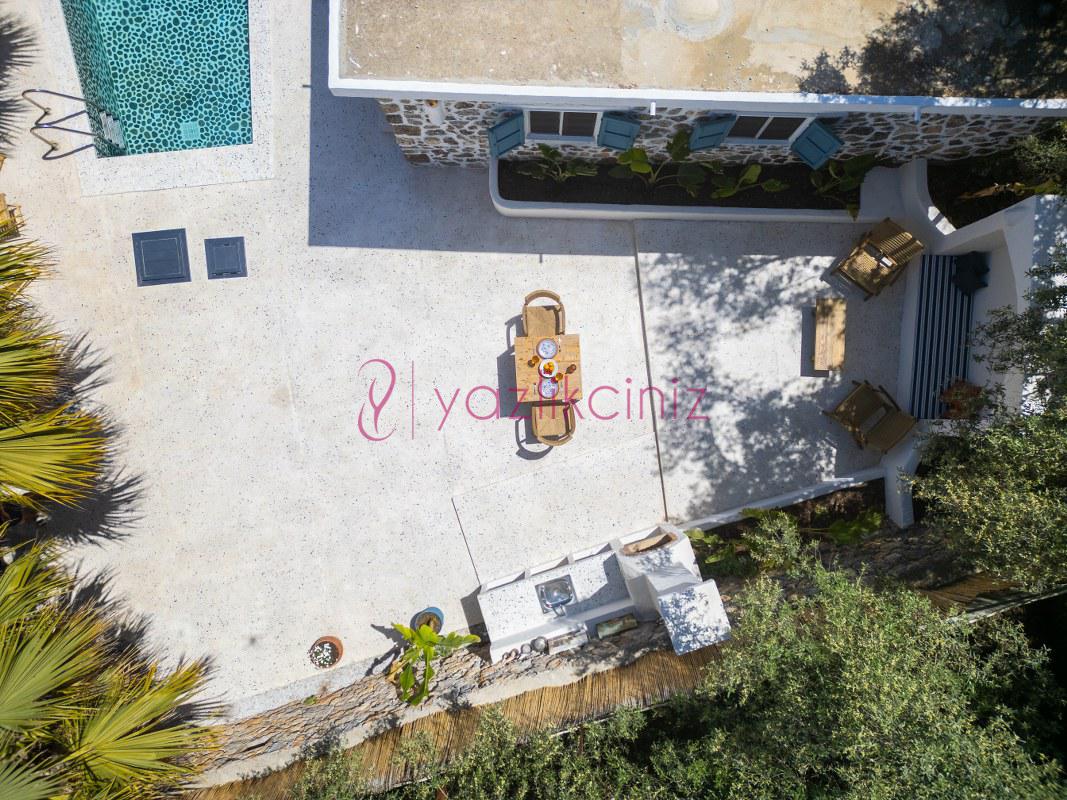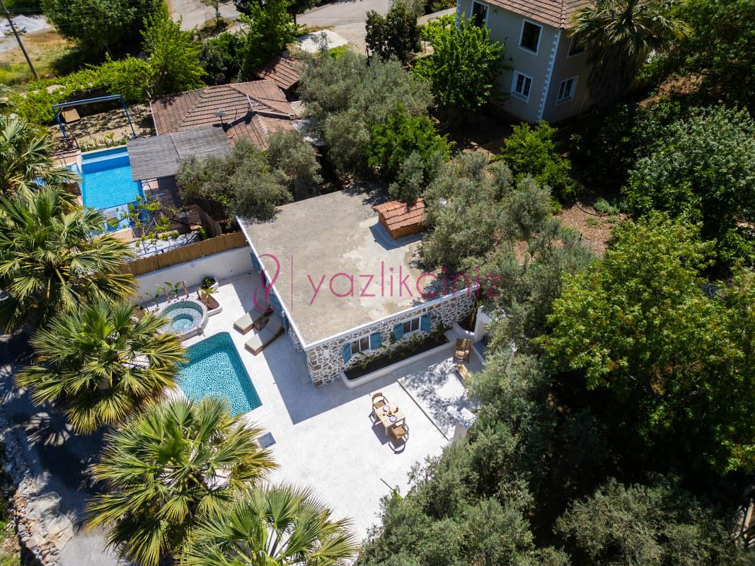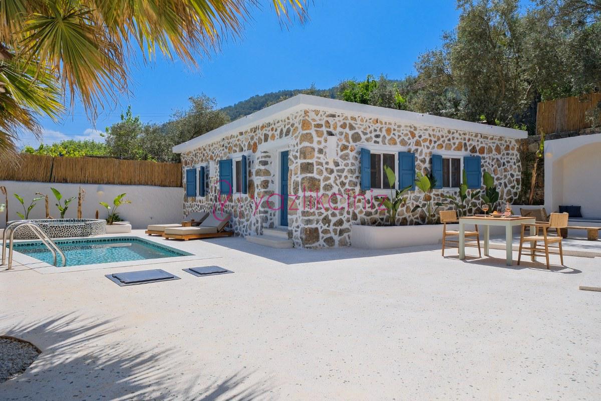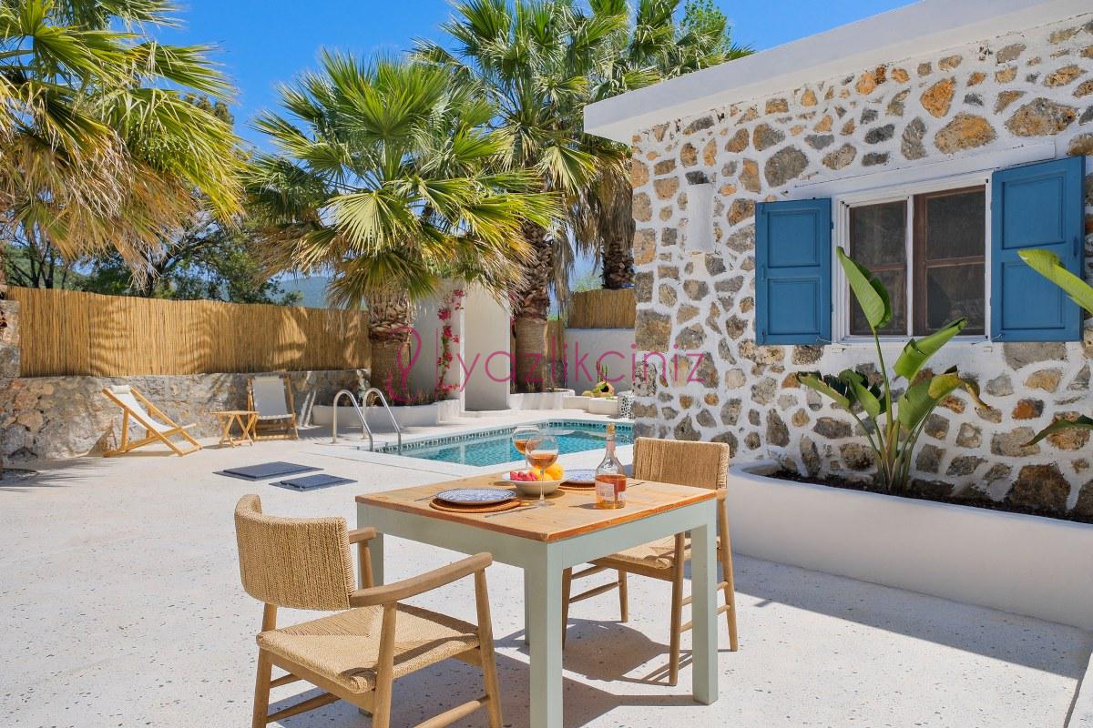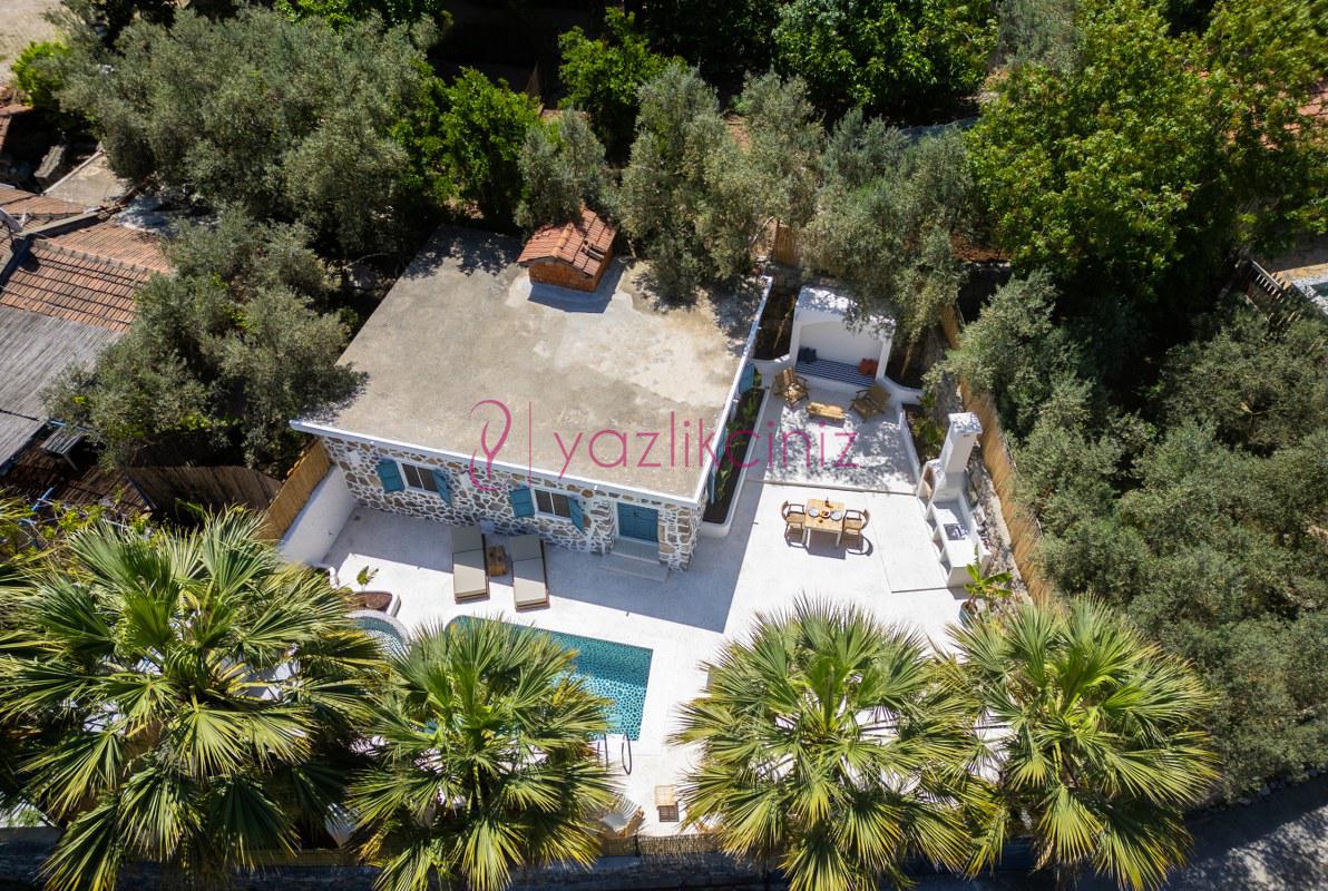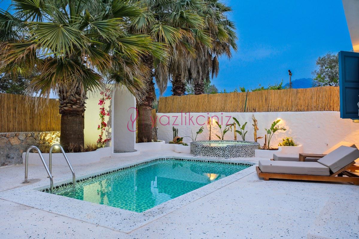 Özel yüzme havuzu, şezlong, oturma alanı, mangal, yemek masası bulunmaktadır.