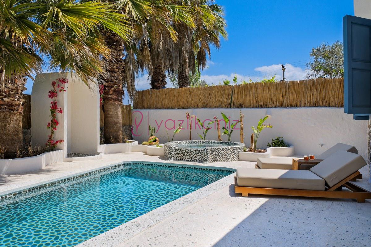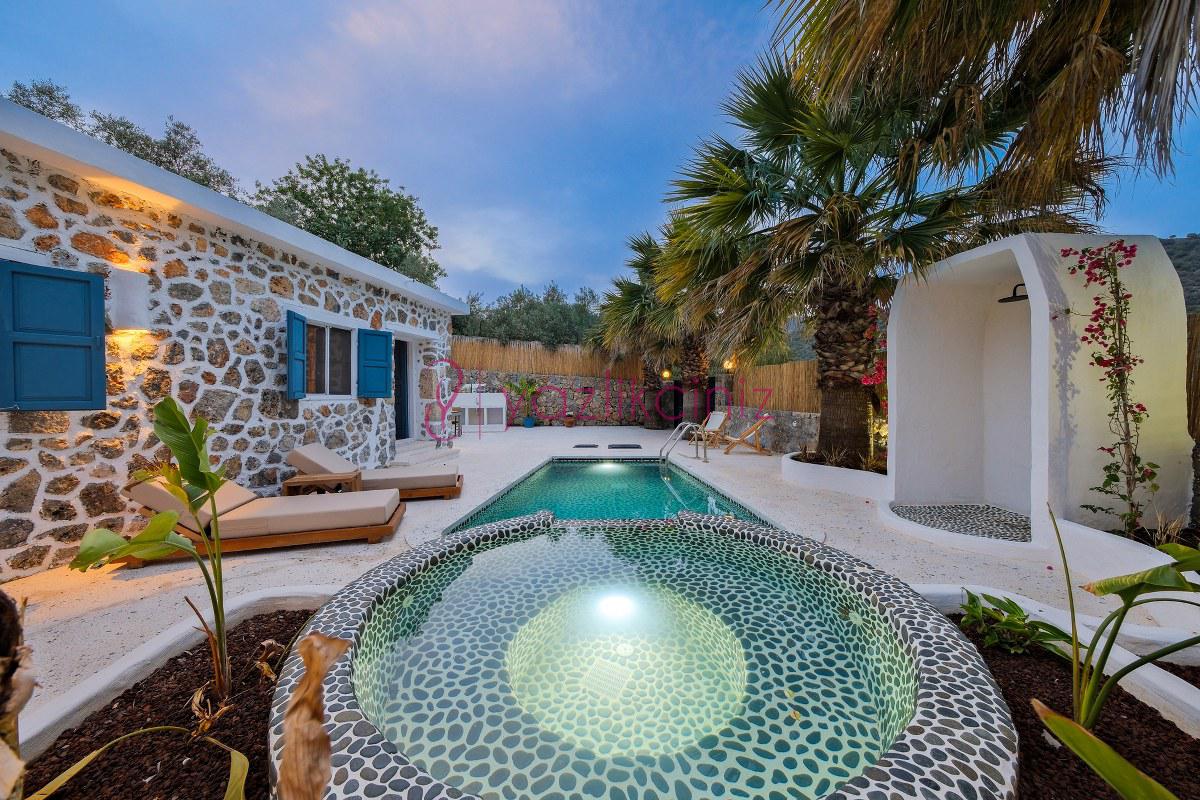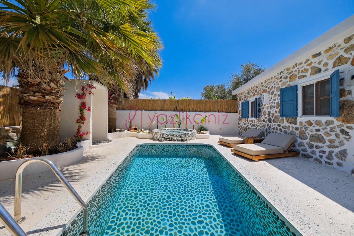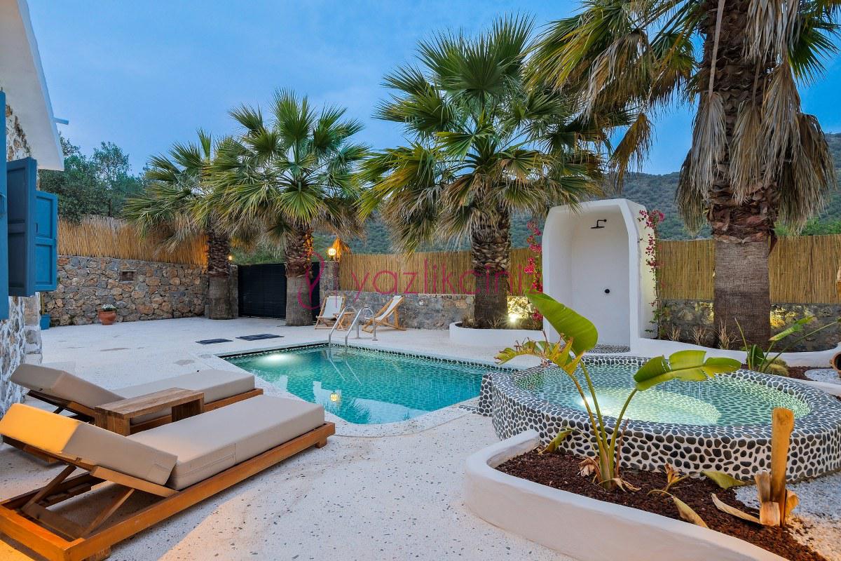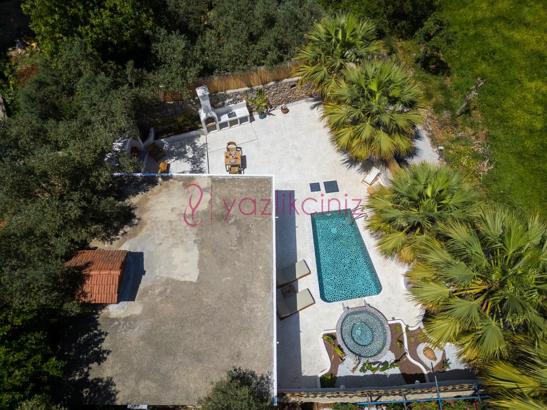 Özel yüzme havuzu, şezlong, oturma alanı, mangal, yemek masası bulunmaktadır.