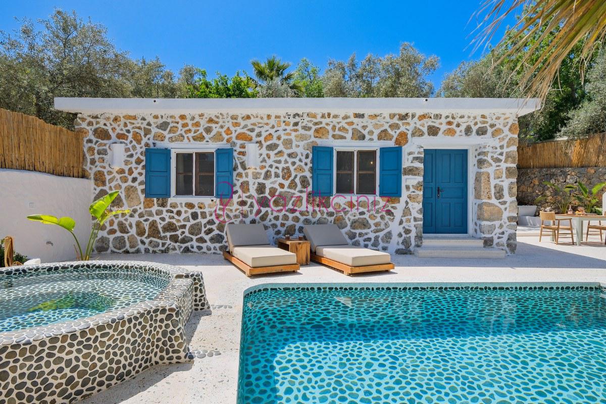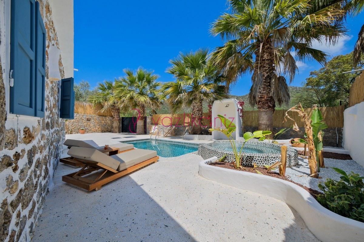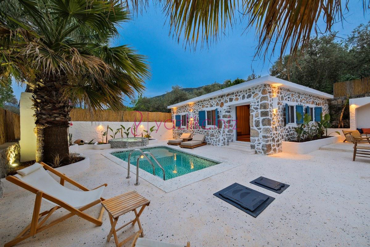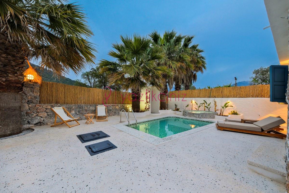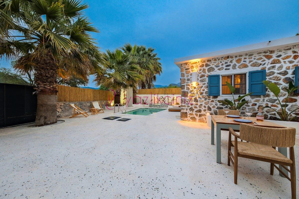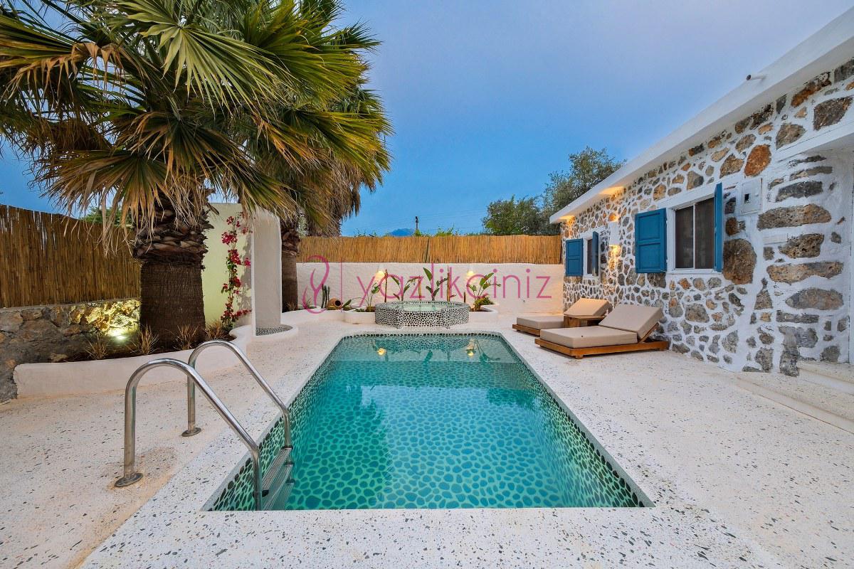 Özel yüzme havuzu, şezlong, oturma alanı, mangal, yemek masası bulunmaktadır.