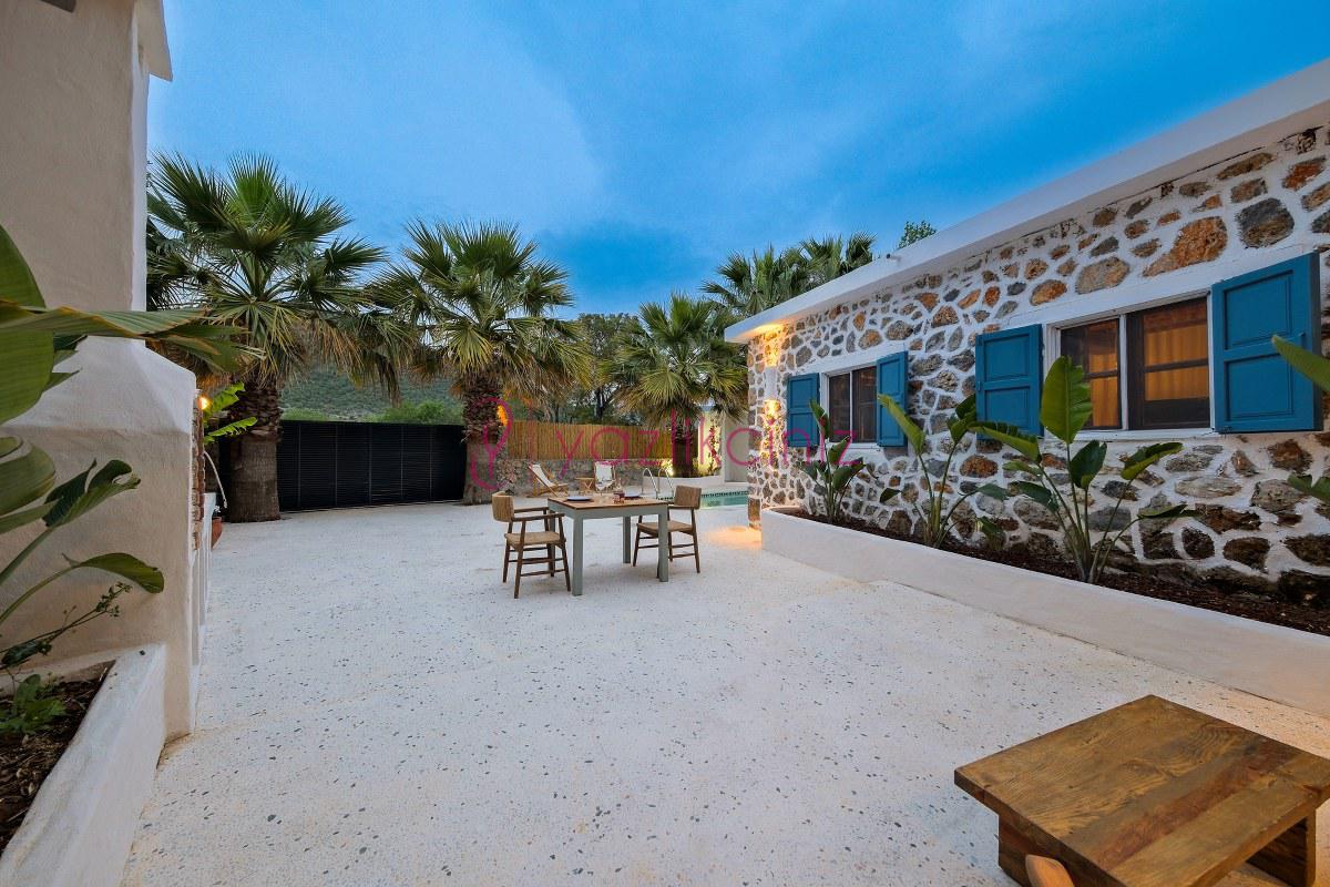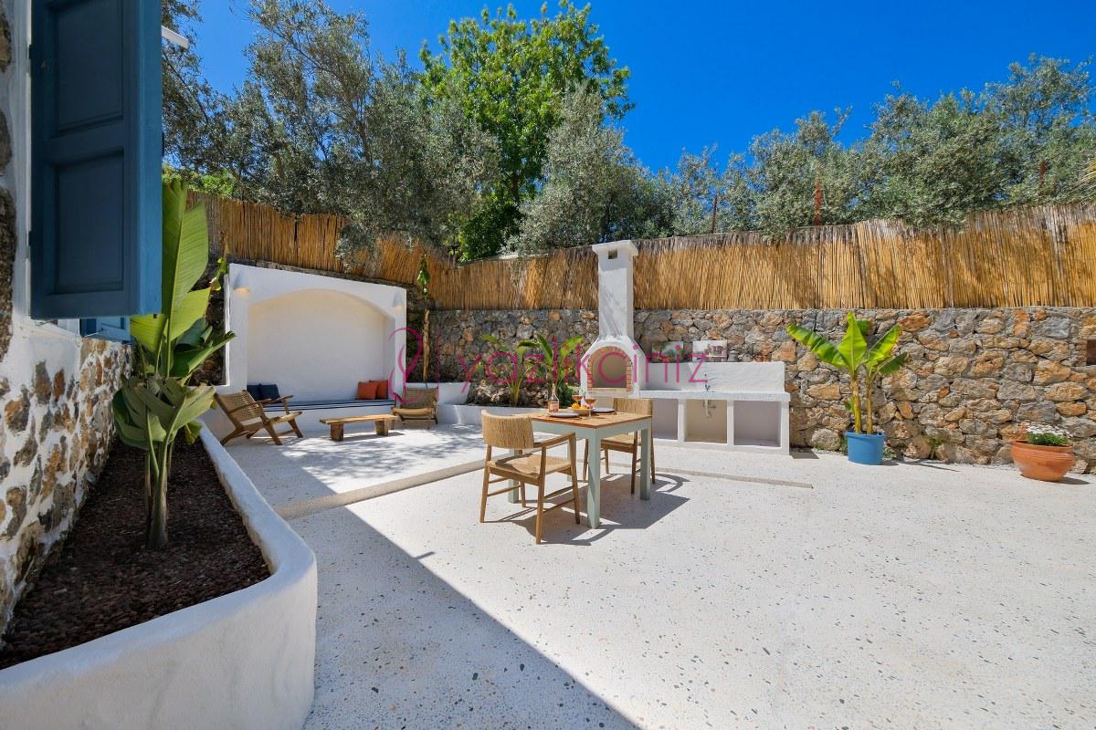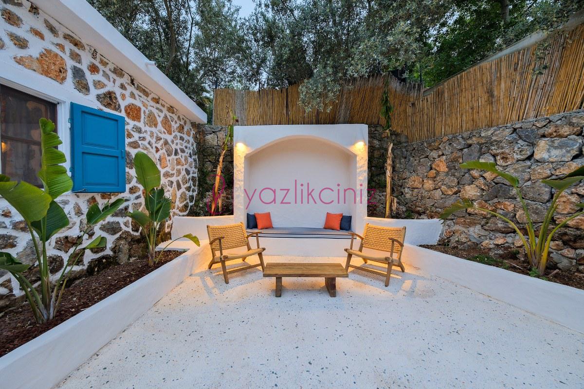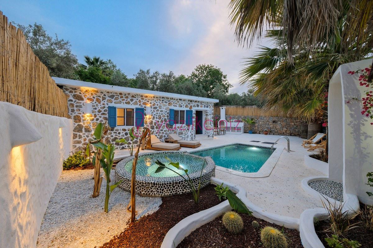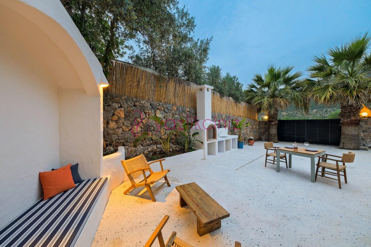 Özel yüzme havuzu, şezlong, oturma alanı, mangal, yemek masası bulunmaktadır.
