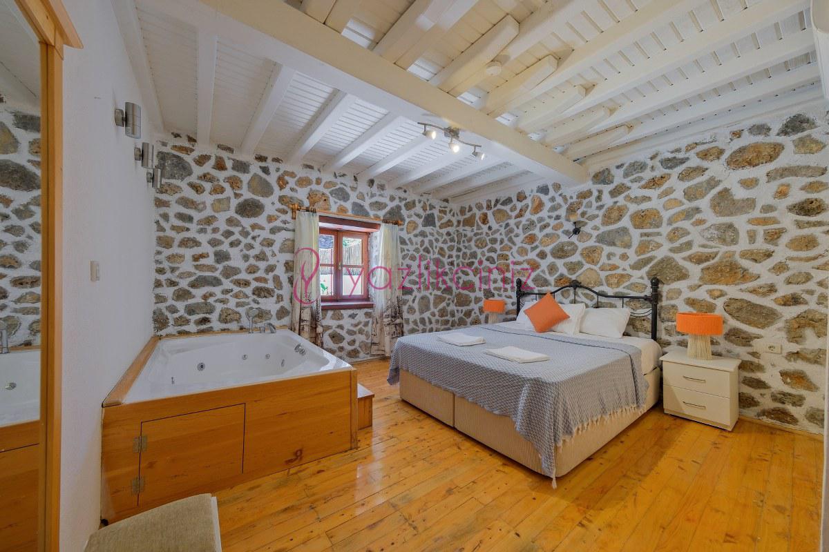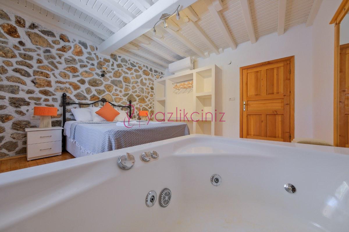 1.Yatak Odası: Çift kişilik yatak, komodin, elbise dolabı, jakuzi, banyo ve tuvalet bulunmaktadır
