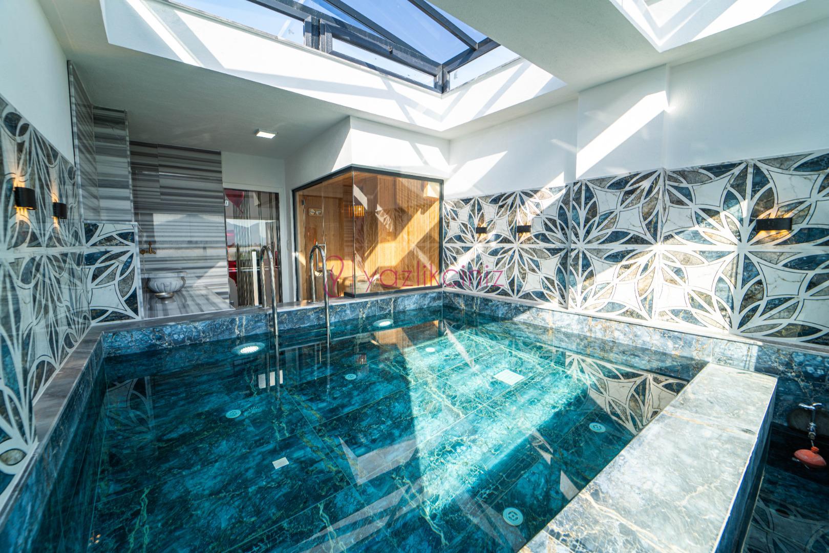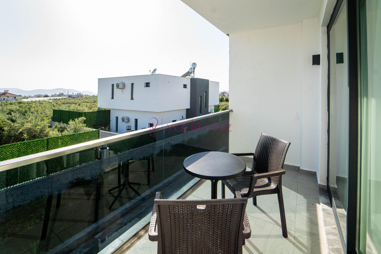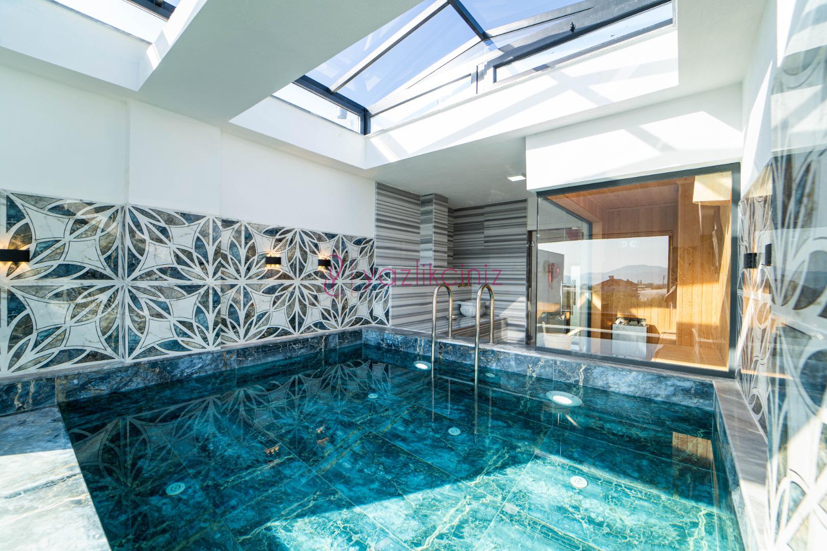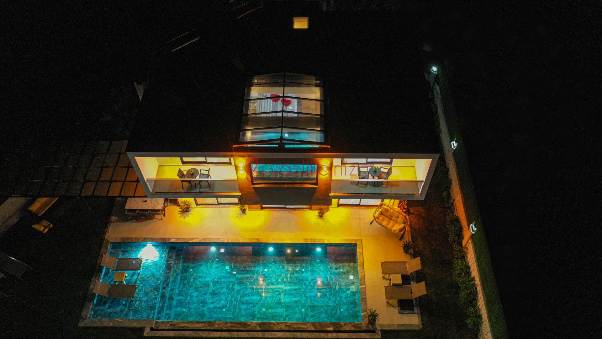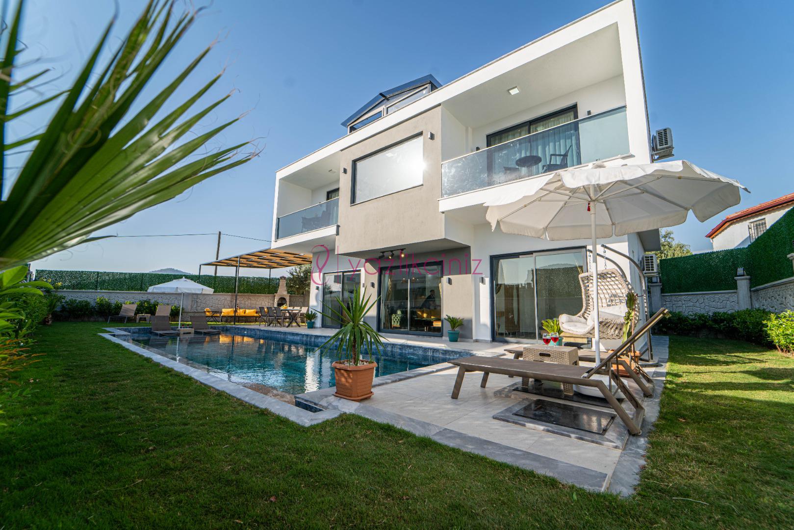 Havuz terasında özel yüzme havuzu, şezlonglar, güneş şemsiyesi, bahçe oturma grubu, salıncak bulunmaktadır.