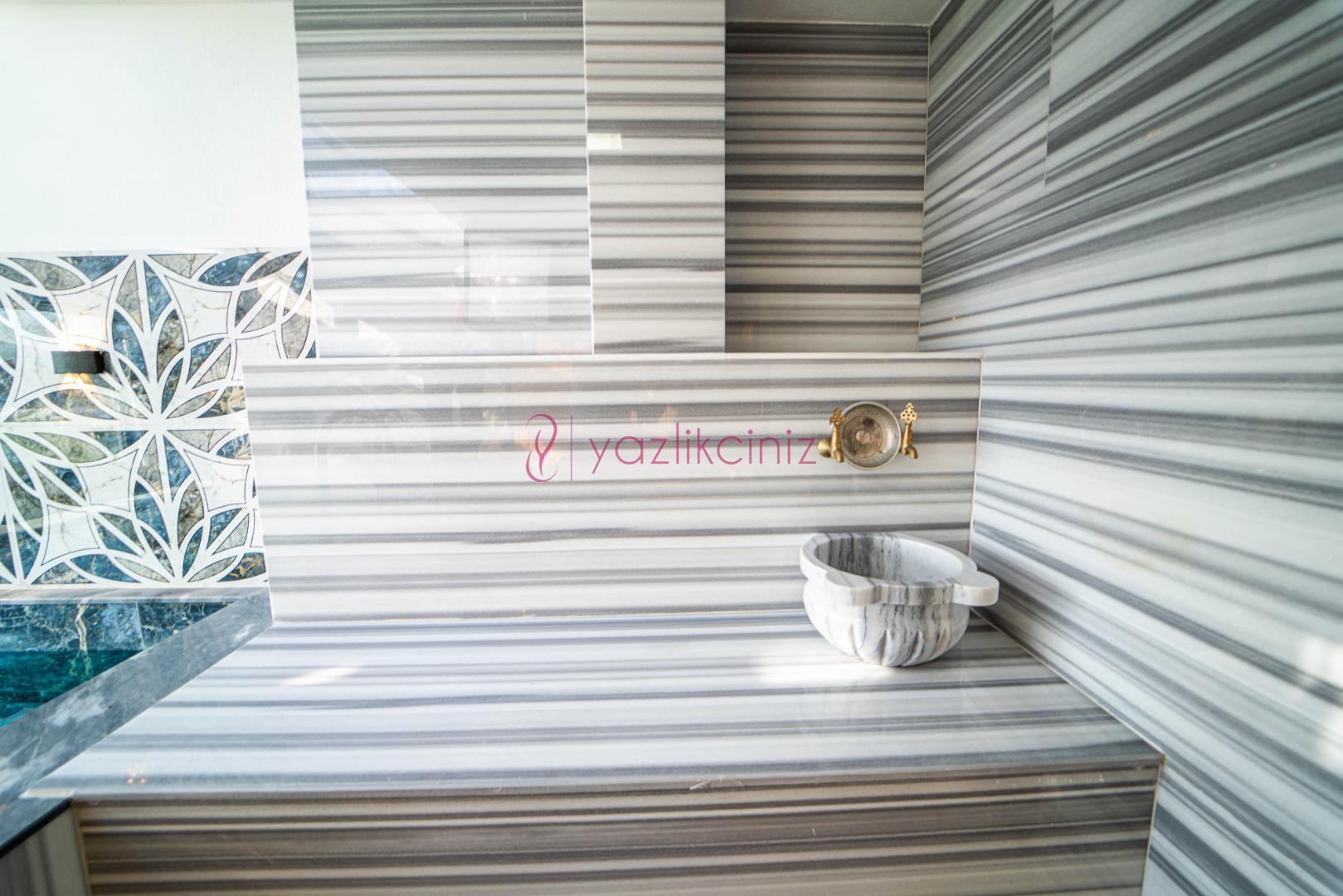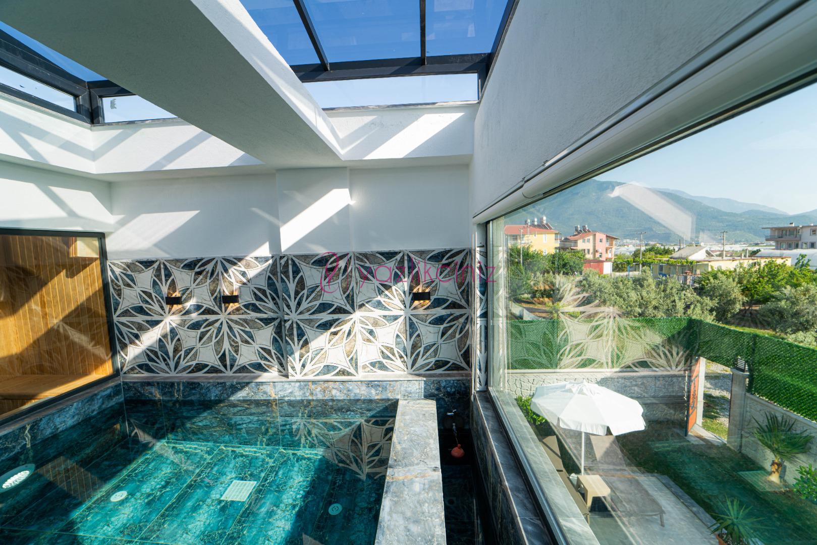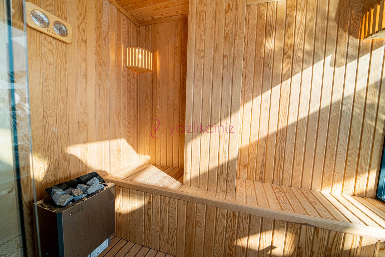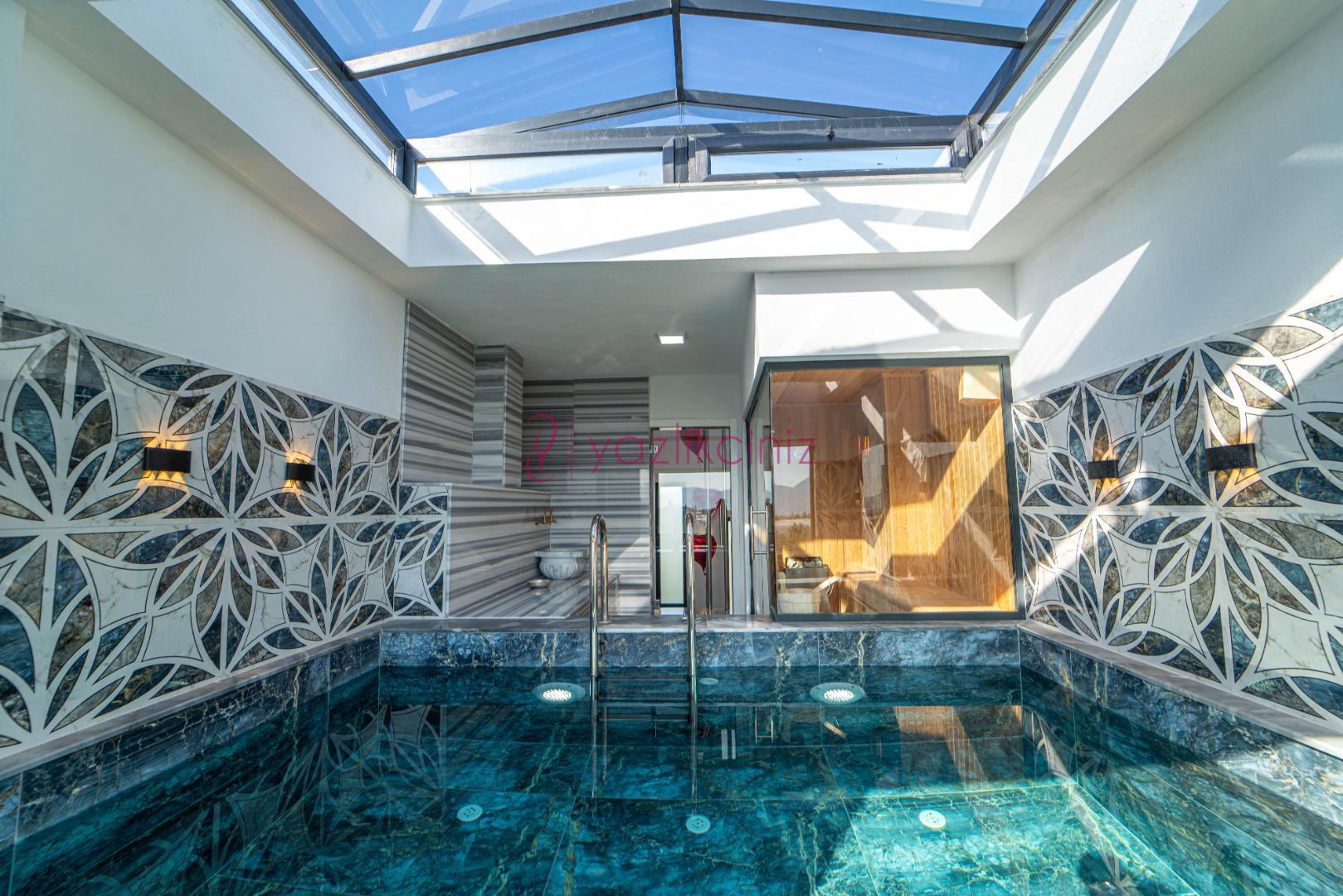 Havuz terasında özel yüzme havuzu, şezlonglar, güneş şemsiyesi, bahçe oturma grubu, salıncak bulunmaktadır.