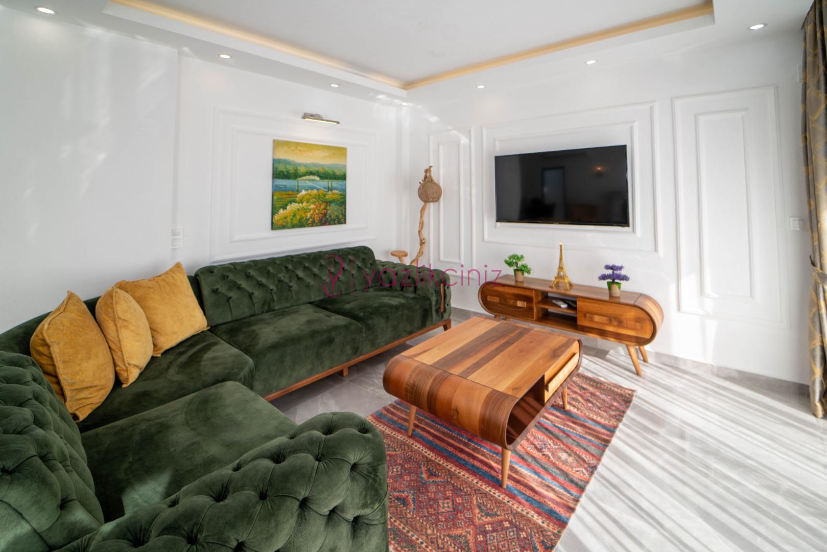 Salonumuzda oturma grubu, klima, televizyon, sehpa, uydu alıcı, internet bulunmaktadır.
