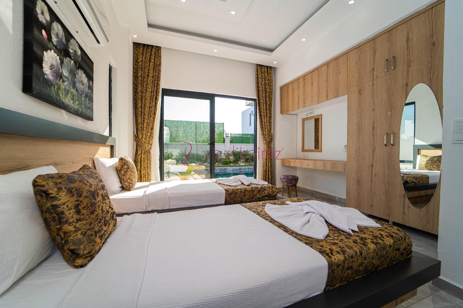 3.Yatak Odası: 2 adet tek kişilik yatak, klima, elbise dolabı, banyo ve tuvalet bulunmaktadır.